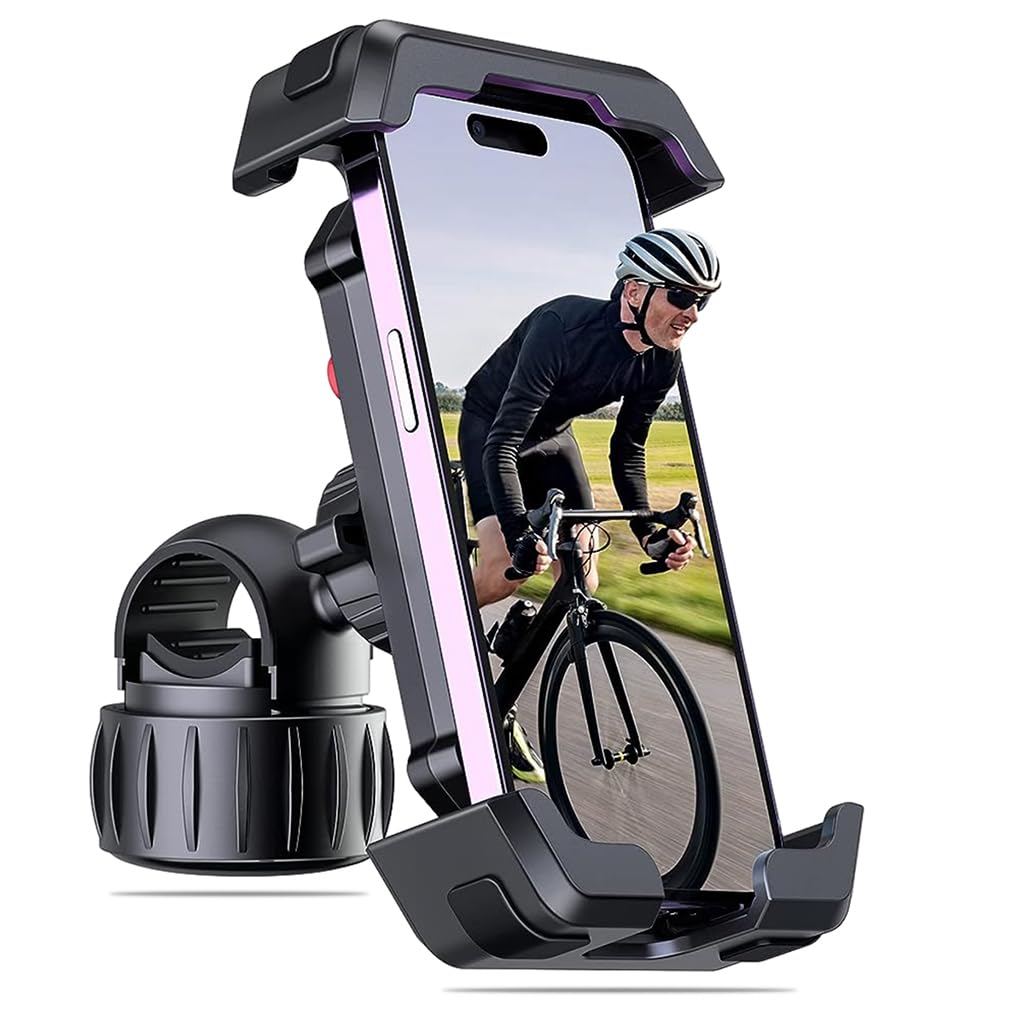 STHIRA® 360° Rotatable Anti Shake Mobile Holder for Bikes is a stable, shock-resistant phone mount designed to keep smartphones secure during every ride. Built with a one-click locking mechanism and ripple silicone padding, it effectively absorbs shocks and protects devices from scratches. Its convenient one-hand operation allows quick access to facial or fingerprint recognition, calls, music, and navigation. The adjustable clamp fits smartphones from 4.7 to 7.2 inches, including iPhone, Samsung Galaxy, and Google Pixel models. With 360° rotation and quick installation, it ensures clear viewing at any angle. Ideal for bike, scooter, and motorcycle riders, this STHIRA® holder enhances safety, convenience, and reliability on the road.