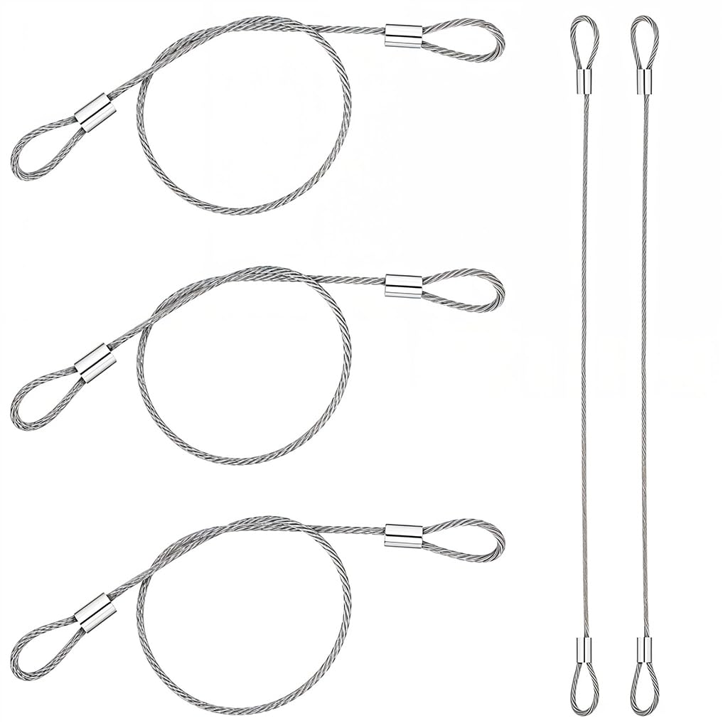 HASTHIP 5Pcs 3.3ft Hanging Pot Wire Rope Hanging Pots for Plants Flower are durable loop-ended steel wire ropes designed for reliable indoor and outdoor use. Made from high-quality steel with a 2mm diameter, these ropes combine strength and flexibility, making them suitable for hanging planters, lights, and decorations. Each wire rope measures 3.3ft, providing the ideal balance between utility and convenience for various hanging needs. The pre-looped design allows quick and effortless installation without extra tools, simplifying DIY projects. Available in a pack of five, they offer ample quantity for home décor or event setups, ensuring secure hanging solutions that reflect HASTHIP’s commitment to practical quality and design reliability.