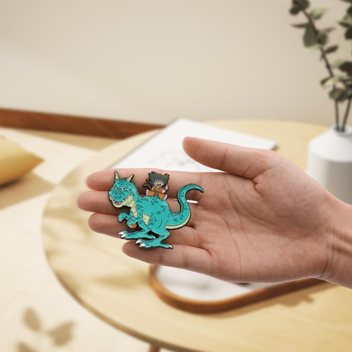 - UNIQUE DRAGON BALL BROOCH PIN: The Dragon Ball Brooch Pin stands out with its one-of-a-kind design. Featuring Son Goku riding on the back of a green dragon, brings out a classic image of Dragon ball. The intricate craftsmanship highlights every detail, from the expressions on the characters' faces to the dynamic poses. The vibrant color design adds an element of liveliness and excitement to the brooch pin.