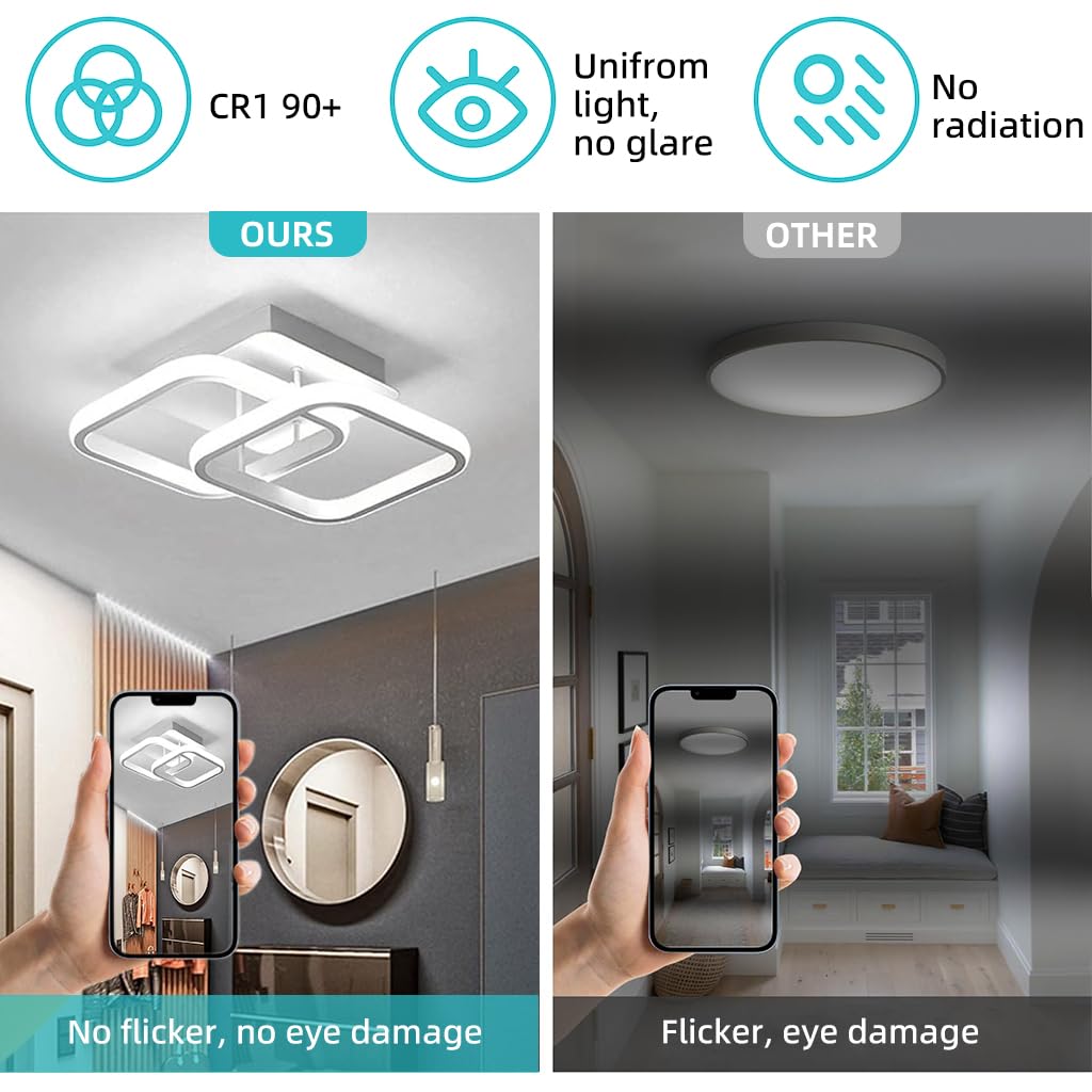 - EYE-FRIENDLY 6000K COOL WHITE LIGHT: Prioritize comfort and efficiency with this ceiling lamp's 6000K cool white light, designed to be gentle on the eyes. Energy-efficient LED beads provide flicker-free illumination, making it an excellent choice for reading or working areas. Improve your lighting experience and protect your eyes with a bright yet soothing light. Upgrade your space with our eye-friendly solution!