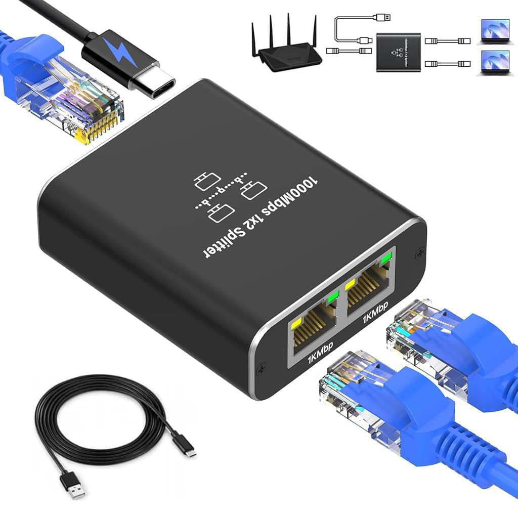 - ZORBES USB C Powered Dual Gigabit Ethernet Splitter for Streaming and Gaming | 1000Mbps Plug and Play Connectivity ZORBES USB C Powered Dual Gigabit Ethernet Splitter for Streaming and Gaming | 1000Mbps Plug and Play Connectivity
