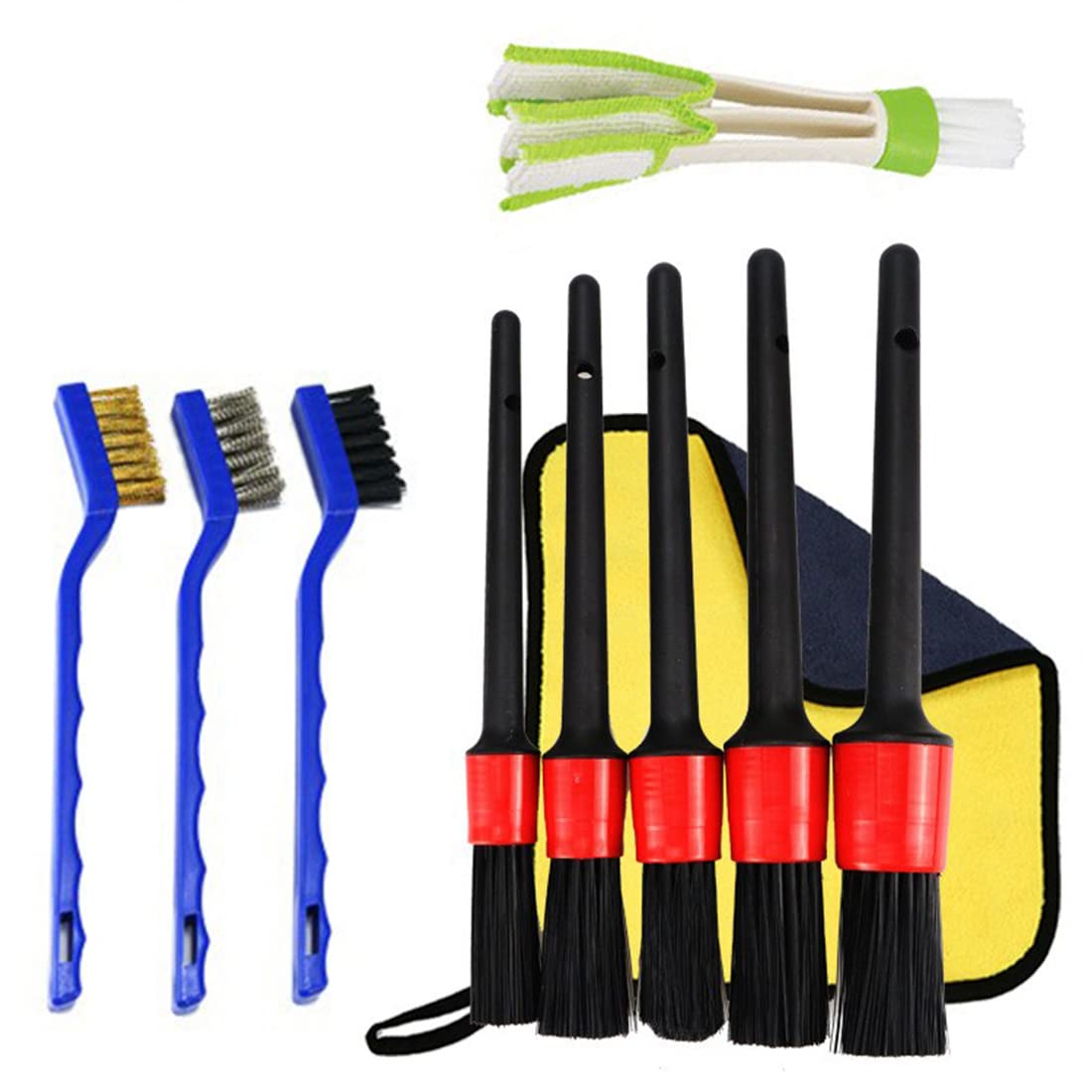 - The 11-piece set includes brushes, towel, wax applicator pad, and vent cleaner for comprehensive car care.