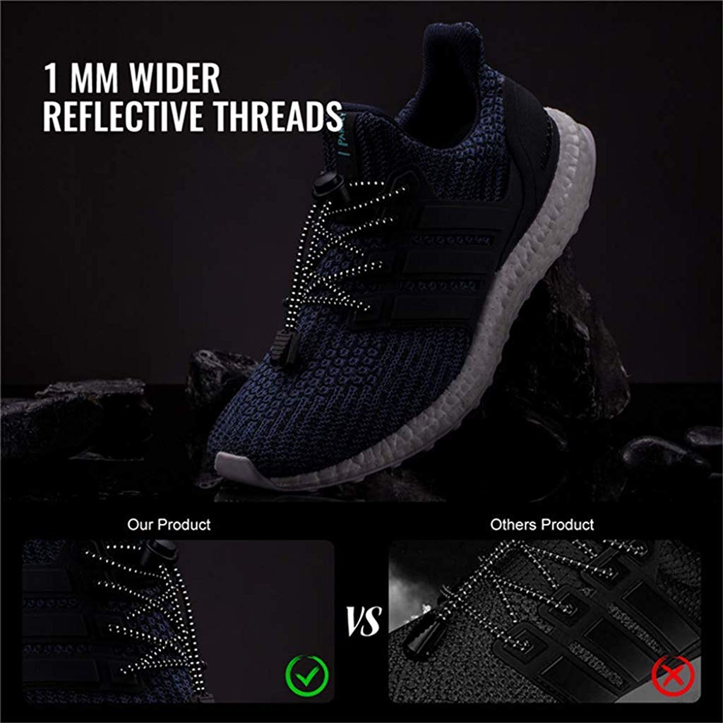 - One Size Fits All (kids and adults): The no-tie Shoe lace fit all type of shoes regardless of size. It is perfect when it comes down to running, hiking or training and it improves visibility in the dark.