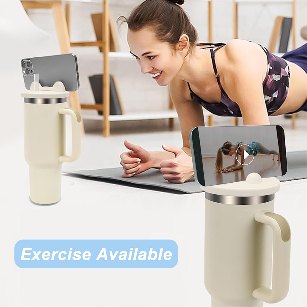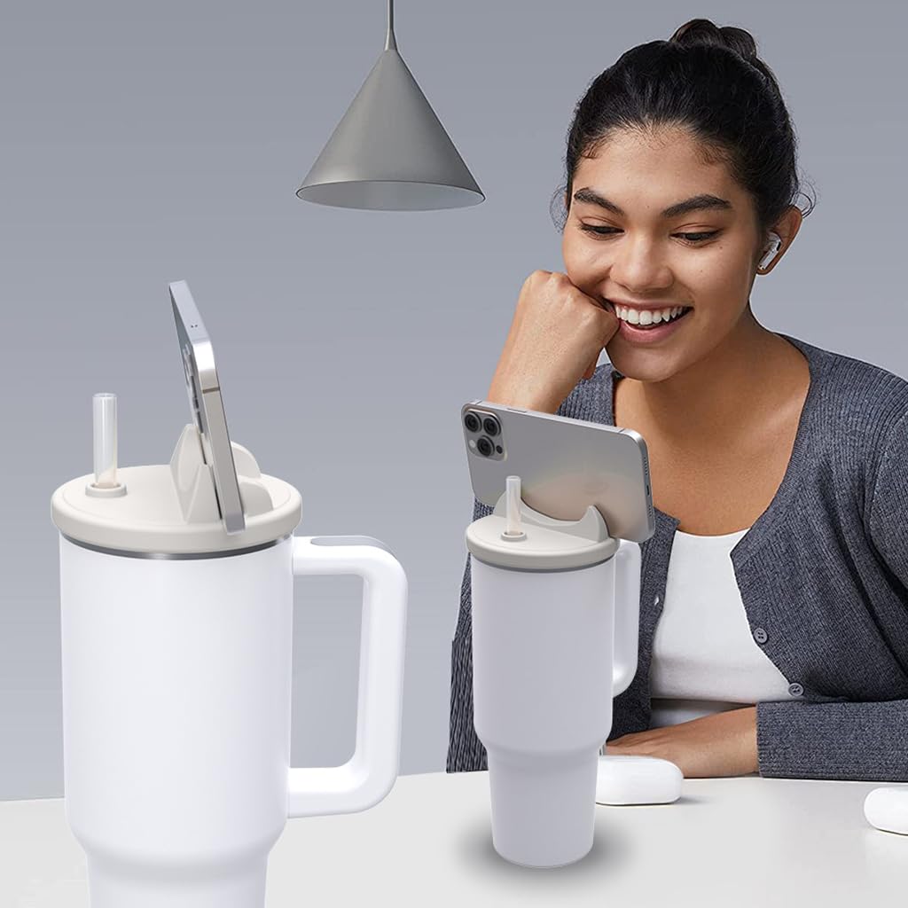 - INTEGRATED PHONE HOLDER DESIGN: Uniquely designed with an integrated phone holder, this lid allows you to conveniently place your phone on it whenever needed. Whether streaming videos, making calls, or looking at recipes, this feature offers hands-free convenience, making your tumbler a multifunctional accessory.