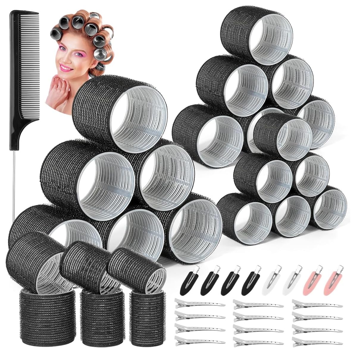 MAYCREATE Hair Roller 39pcs Kit featuring 3 Sizes Heatless Curlers with Clips & Comb Set