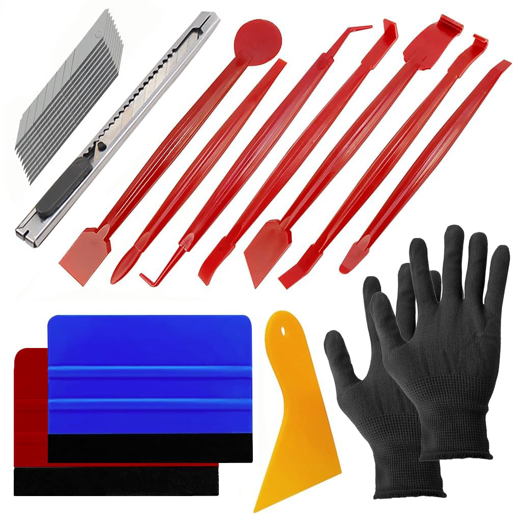 STHIRA Car Window Film Tint Tool Kit provides a complete solution for car wrap, window tint, and decal application with all essential tools in one set. Designed for both professional detailers and DIY users, it includes felt squeegees, scrapers, and a retractable cutter to ensure efficient and accurate film installation. The durable plastic materials offer flexibility and prevent surface damage during vinyl wrap or paint protection film application. With its premium construction and easy-handling design, users can achieve a scratch-free, precise, and clean finish on various vehicle surfaces. This reliable STHIRA kit helps enhance car appearance while supporting safe and precise customization.