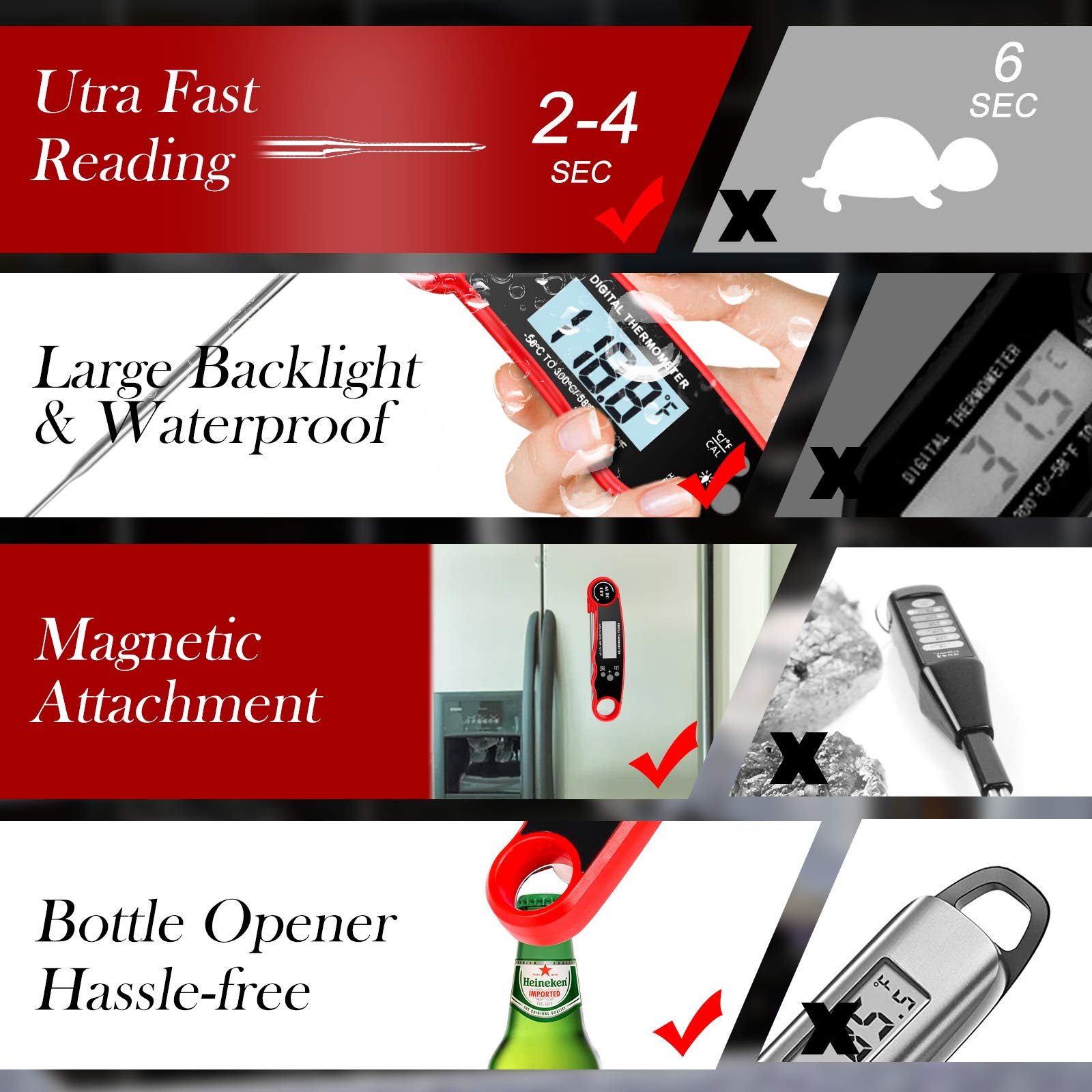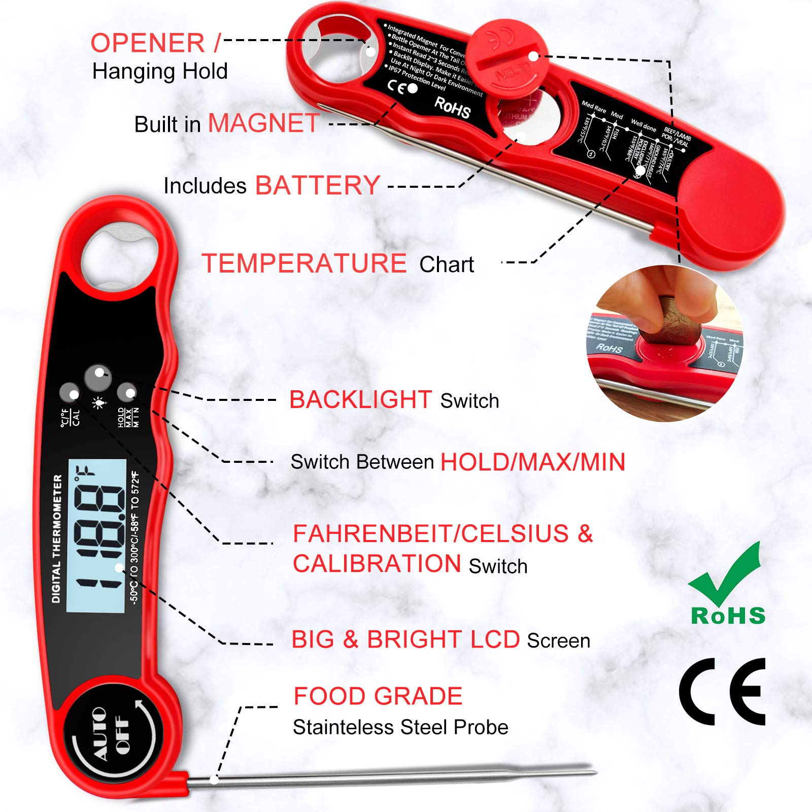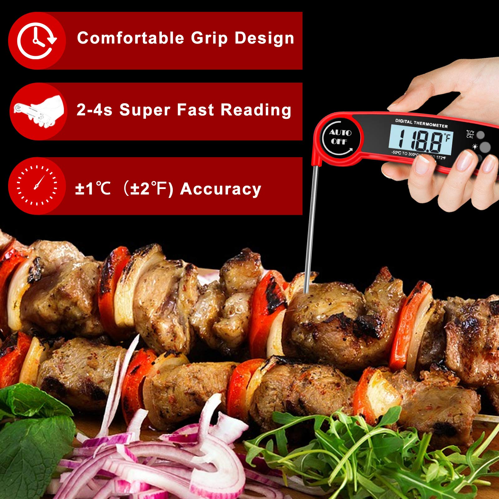 - ?[Ultra-Fast And Accurate Reading] £ºTakes the instant read thermometer in a little as 2-3 seconds, and is accurate to +/-1 degrees with a wide range of -58¨H-572¨H. (-50¡ãC to 300¡ãC). No more worried about the food is overcooked or undercooked. Perfect for indoor and outdoor cooking, grilling, BBQ and so on.