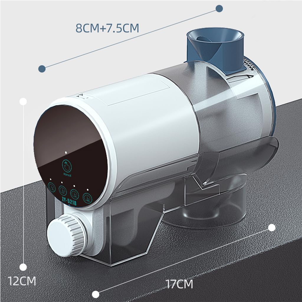 - MOISTURE-PROOF DESIGN & AUTO FEEDING: 220ml large capacity(About 200g fish food), can accommodate most types of food, including flakes, pellets or crumbles. Moisture-resistant hopper keeps fish food dry, won't get wet or jammed. It accommodates most types of food, including flakes, pellets or crumbles.