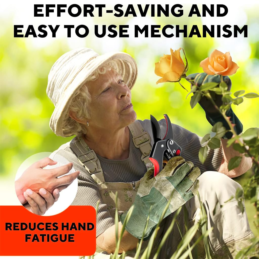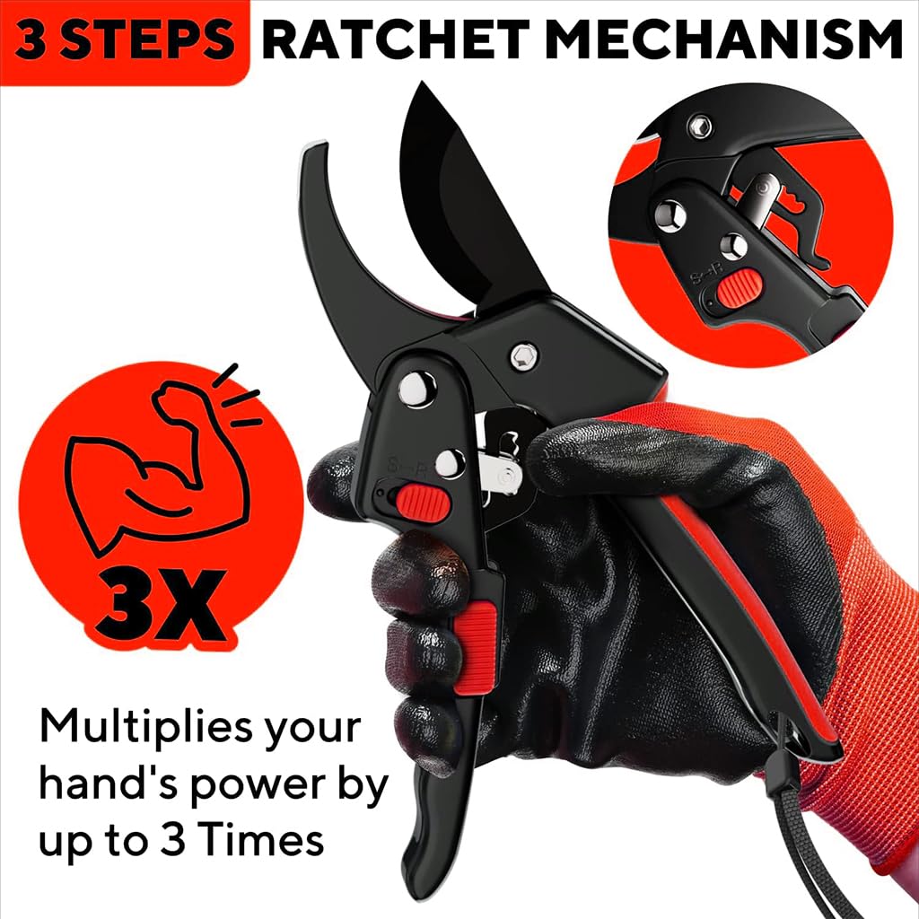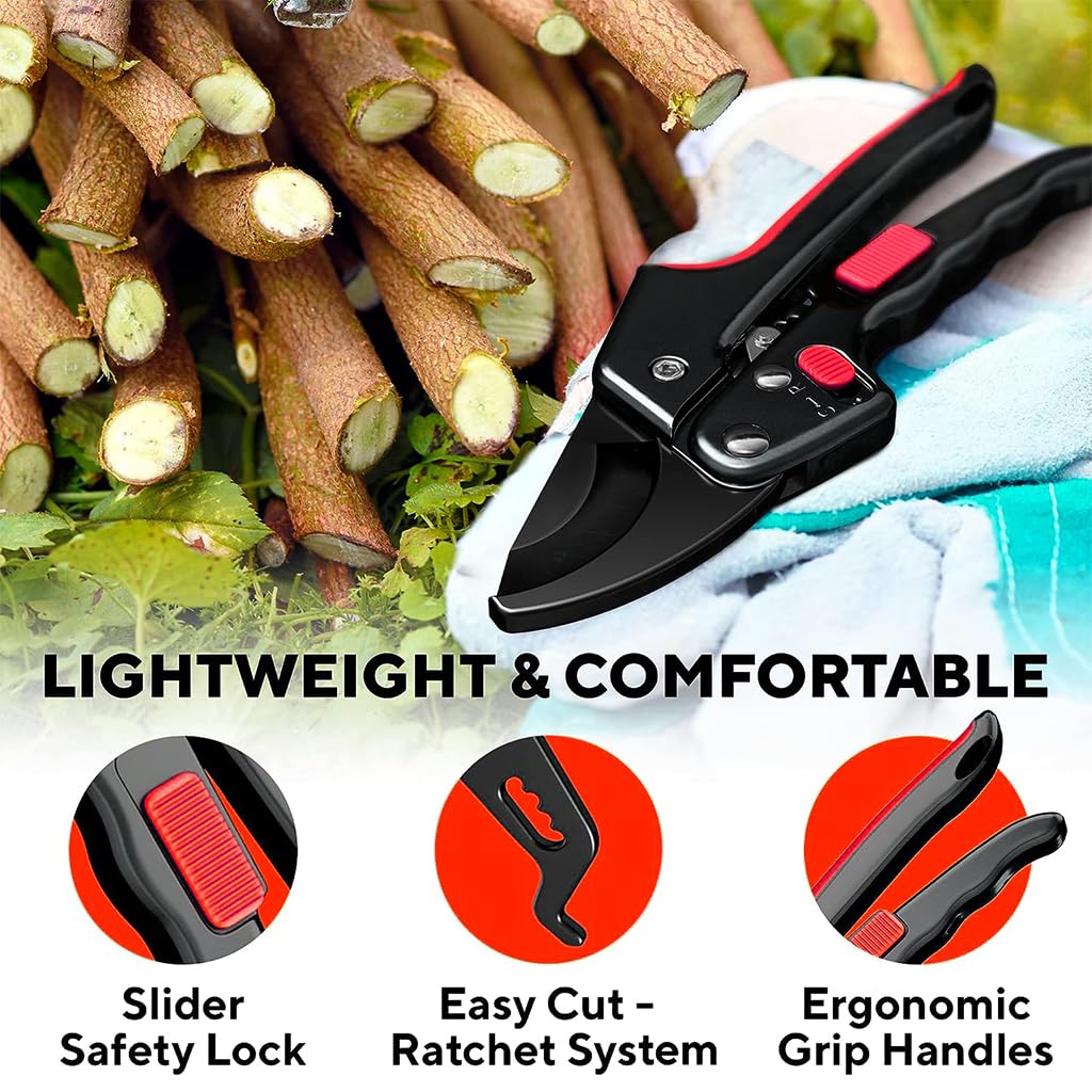 - VERSATILE GARDENING PRUNING SHEARS: Our Ratchet Pruning Shears offer two working modes - the traditional Single-Cut for everyday pruning tasks and an advanced Ratchet-Cut, perfect for dealing with thicker branches. Enjoy the versatility and efficiency this unique design provides. Ideal for pruning, repetitive trimming and intricate trimming .