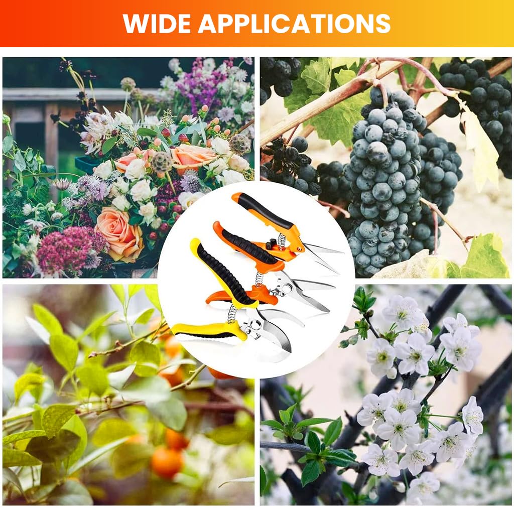 - KIT FOR HOME GARDEN: Designed to meet all types of gardening tasks, the 3Pcs gardening pruning tool set collects a wide range of pruning scissors, perfect for fine, and complex trimming jobs. whether you are taking care of your own orchard, plant garden, or landscape garden, you can easily handle all kinds of branches and flower stems pruning needs.