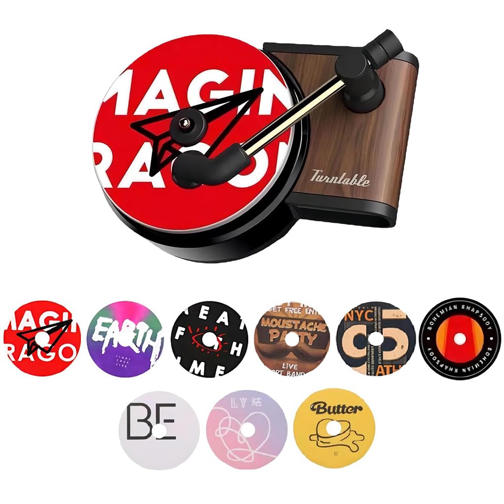 STHIRA Car Air Freshener Air Vent Vinyl Record Player is a creative and vintage-inspired car accessory designed to refresh the air while adding decorative charm to your vehicle. Featuring a unique vinyl record player shape with a rotating platter driven by airflow, it combines style and function for music lovers and retro enthusiasts. The air freshener uses 9 non-toxic aromatherapy tablets that provide a refreshing and pleasant scent. Built from premium plastic and metal, it ensures durability and stability. Compact and easy to install on most car vents, this product makes driving more enjoyable. STHIRA delivers a practical, aesthetic, and long-lasting solution for maintaining a pleasant car atmosphere.