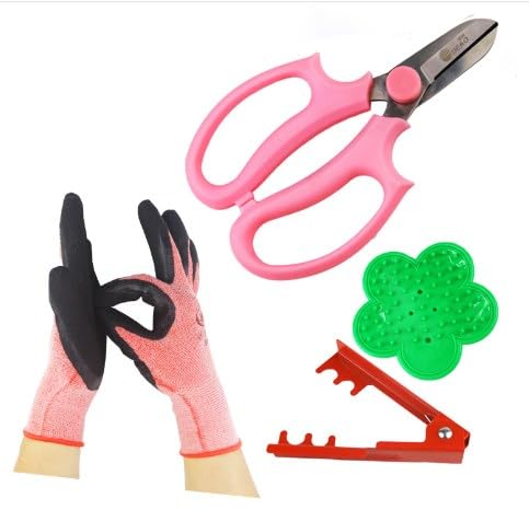 - Includes two different thorn strippers, pink scissors, and gloves for a complete gardening solution.