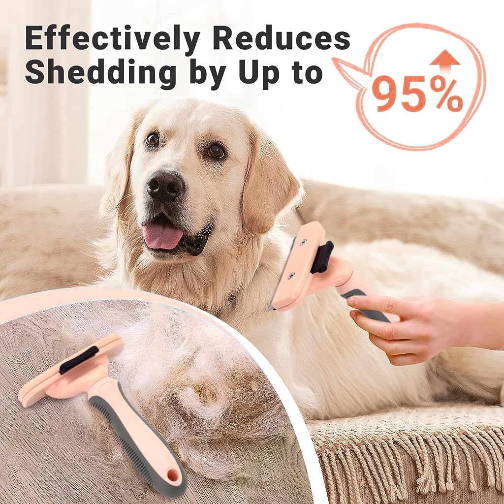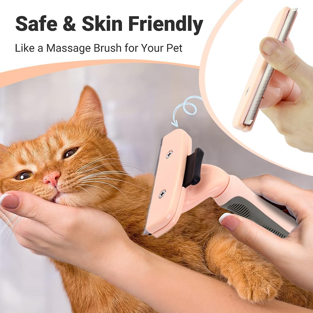 - ONE BUTTON TO CLEAN: The dog comb is with a movable pannel, just push the button, then the panel will be seperated from the main panel so as to take away the shedded hair on the brush, more convenient to clean the brush after using.