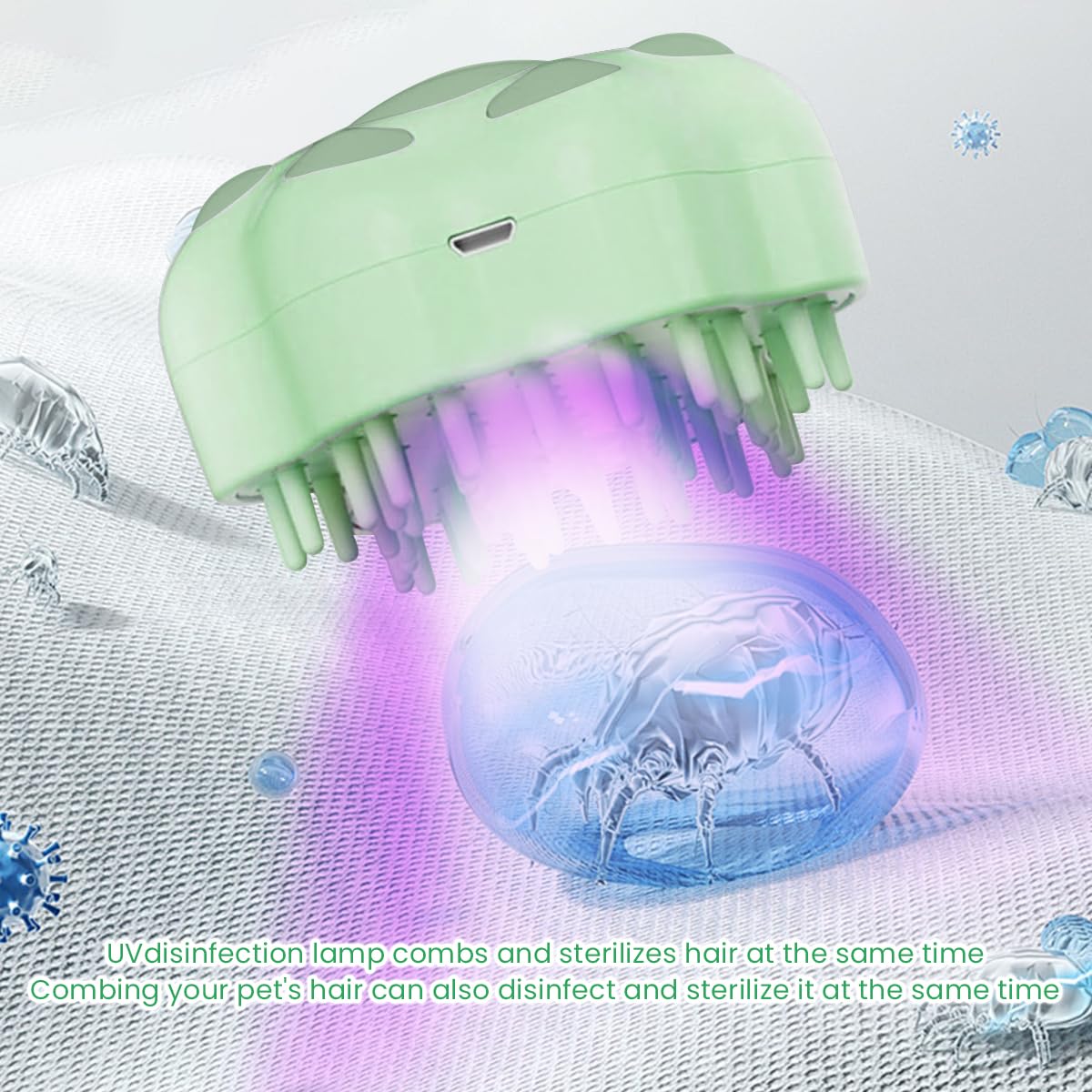 - 3-IN-ONE PET GROOMING BRUSH: Revolutionize your pet's grooming with this innovative steam massage hair brush designed to combine the benefits of a traditional pet brush with the enhancing effects of steam. Moreover, the innovative UV light design eliminates harmful bacteria and promotes a healthier coat for your furry friend. This all-in-one grooming tool not only detangles and smoothens fur but also adds moisture to prevent dryness and skin irritation.