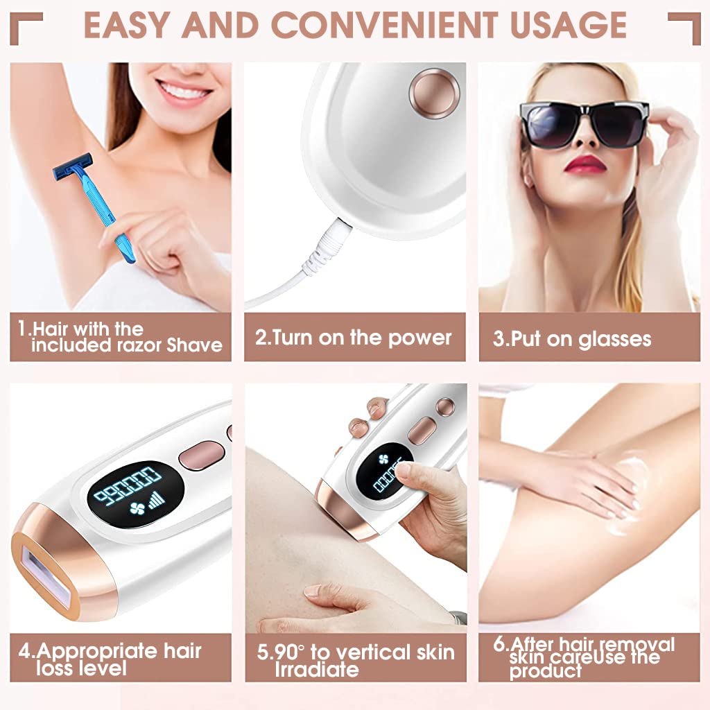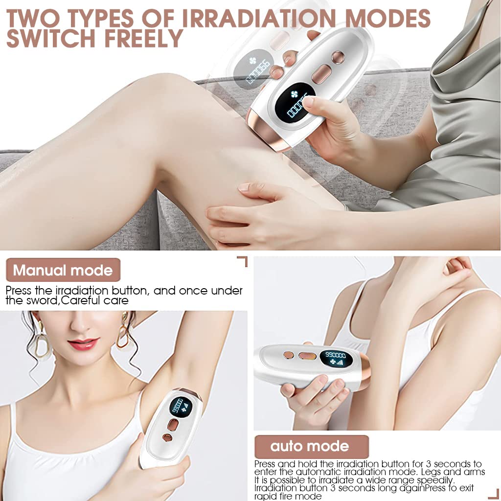 - [Less Pain,Better Effect]--The device is built in cooling fan,can lower the emitted light heat, in case the overheat sting skin.Upgrade hair remover device greatly improve the using experience,more gentle and pain free hair removing.
