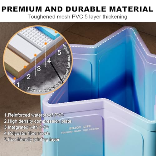- PREMIUM AND DURABLE MATERIAL: Crafted from premium multi layer PVC material and composite panels, this portable bath tub offers excellent durability and longevity. It is resistant to leakage and deformation, ensuring a reliable and enjoyable bathing experience. The sturdy structure adds an extra layer of safety and reliability, enhancing the safety and convenience during use.