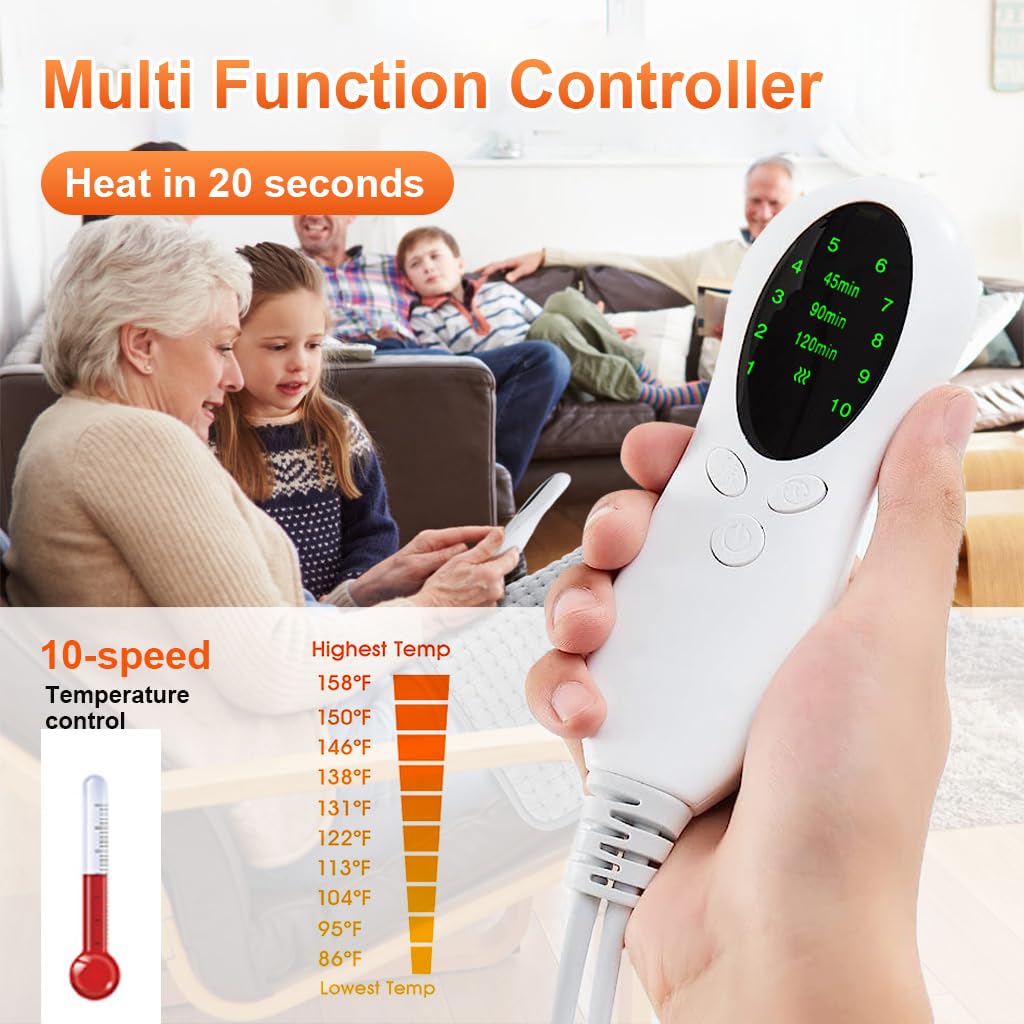 - 10 HEAT SETTING: The heating pad for back pain features 10 different temperature levels ranging from 86 to 158, allowing you to easily adjust the heat to your desired comfort level. Whether you prefer a gentle warmth or a more intense heat therapy, this electric heating pad for pain relief can cater to your specific needs.