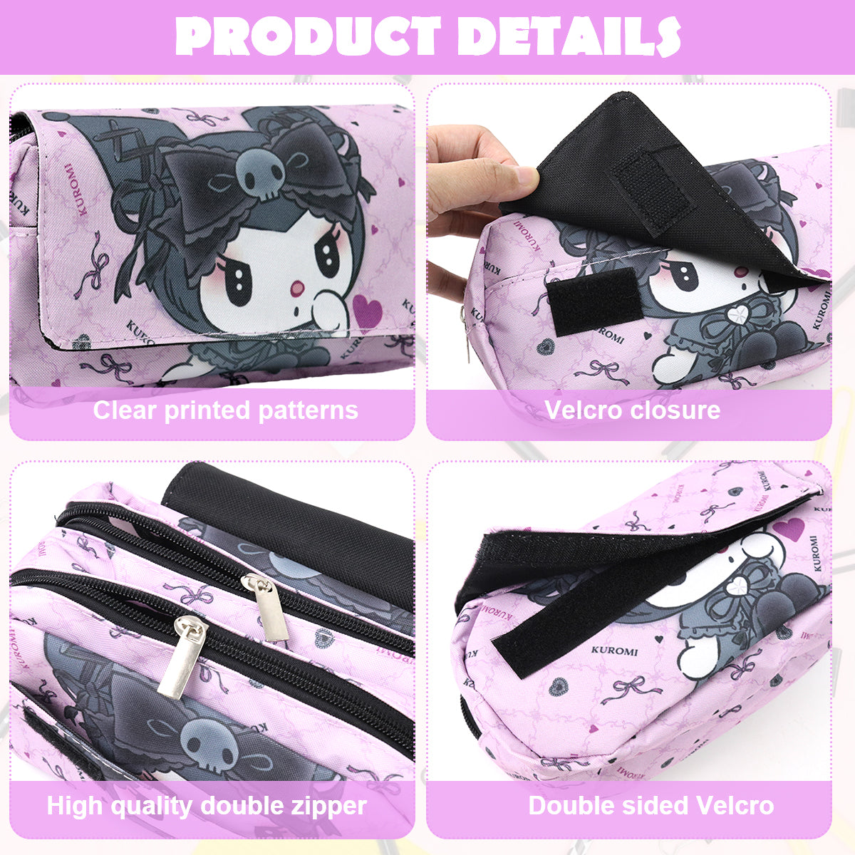 - STYLISHLY SWEET GIRLS PENCIL POUCH: The Kuromi pencil case flaunts an adorable design featuring beloved Kuromi print, making it the ultimate stylish accessory for school-goers! Its lovely cartoon design and vibrant colors turn everyday organization into a fun and stylish experience, adding a splash of color on desk.