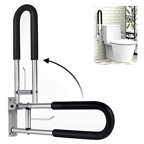 - PREMIUM MATERIAL: The grab bar measures 60 cm /23.6 inches. The U shaped toilet grab bar is made of high quality 304 stainless steel thicken material and support up to at least 300lbs load-bearing, heavy duty rail design for added bathroom security. Anti-slip black protective cover is also installed on the handrails. The durable filp up bar provides a reliable handhold whether you're showering, bathing or using the toilet.