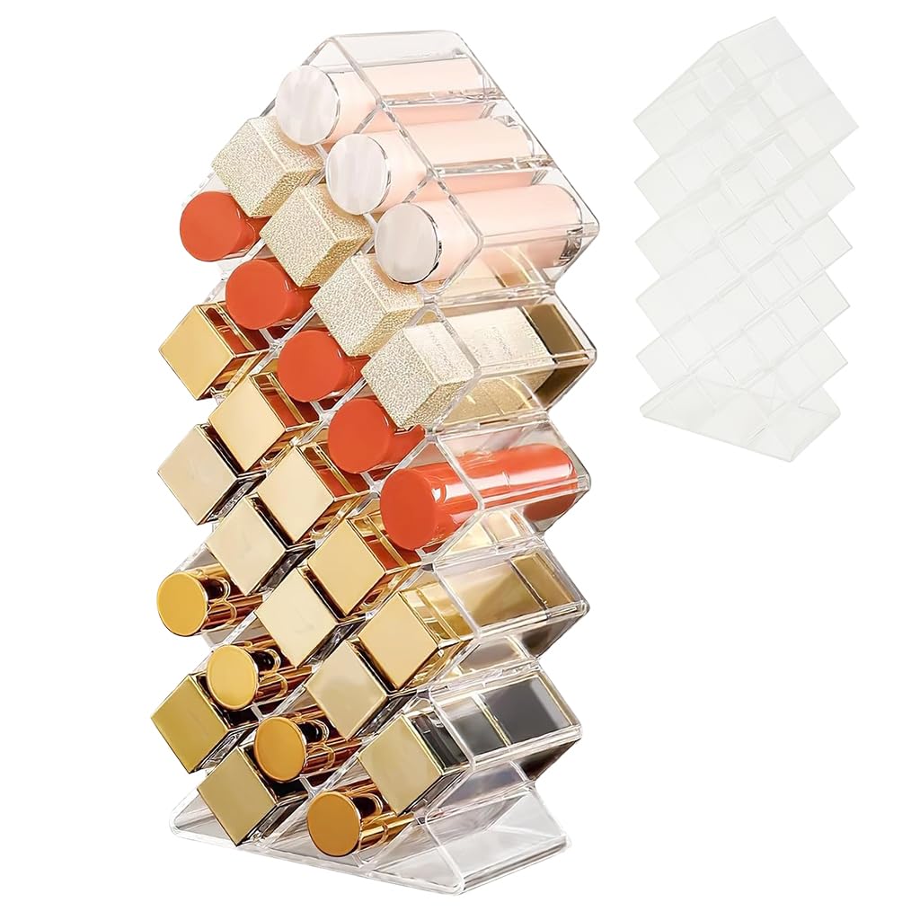 - Features 28 slots for neatly storing and displaying lipsticks or lip balms.