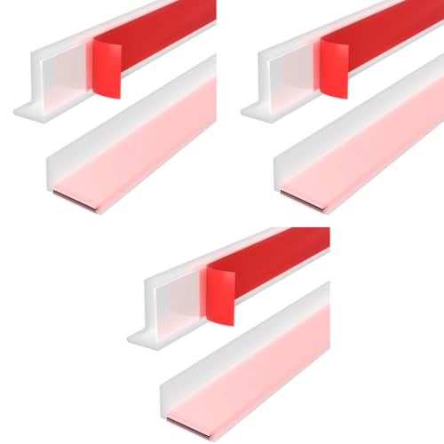 - SELF-ADHESIVE BACKING: The 6.6ft/2m water barrier strip features a high-quality self-adhesive backing, simplifying the installation process by eliminating the need for additional tools or hardware. This adhesive ensures a strong bond, preventing water from seeping through and maintaining a dry bathroom floor.
