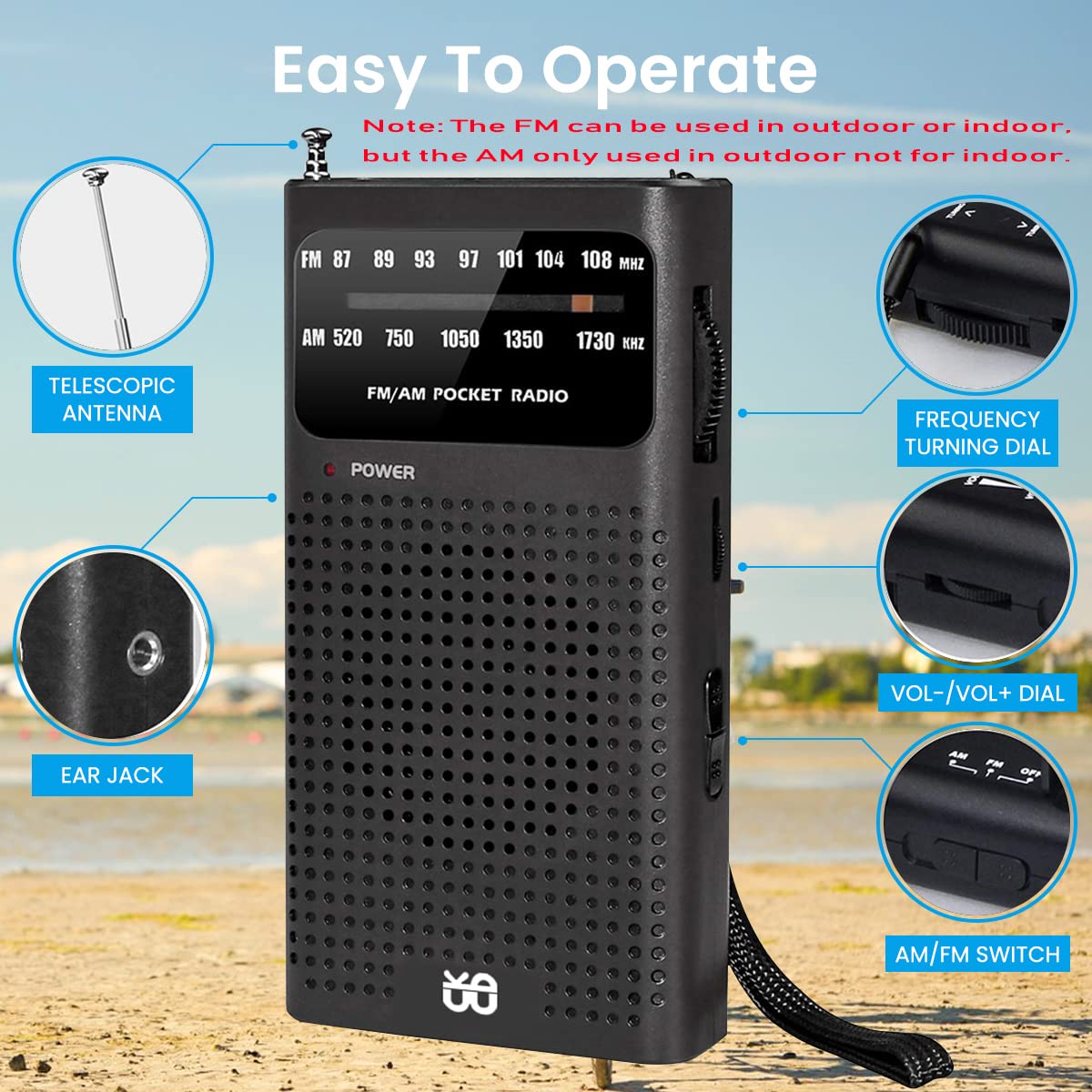 - EXCELLENT GIFT FOR ALL: The mini fm radio pocket is a nice gift for all age, especially for kids and elder, simple and convenient operation is easy for any one to use. A nice and fun pocket radio am fm transistor radio can make kids spend less time on screen, also can let elders enjoy instant news and enjoy more fun and relaxation. You can enjoy music, news without worrying disturbing others. You can also take mini radio pocket with you to camp, hike, travel, a nice travel companion.