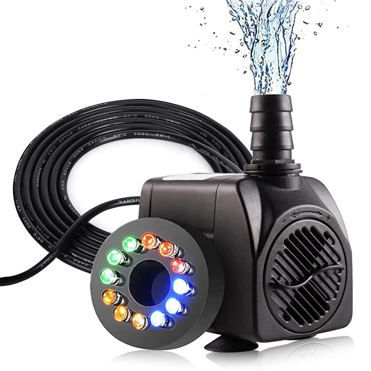 - HASTHIP Aquarium Pump for Fountains and Fish Ponds with 750L/H Flow and 12 LED Lights | Ultra‑Quiet Submersible Motor 15W Black HASTHIP Aquarium Pump for Fountains and Fish Ponds with 750L/H Flow and 12 LED Lights | Ultra‑Quiet Submersible Motor 15W Black