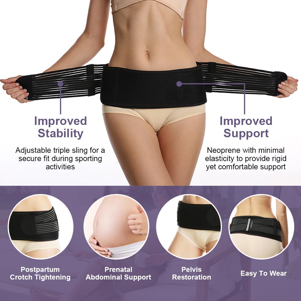 - WOMEN PELVIC SUPPORT BELT: The purpose of pelvic support strap is support during pregnancy or after childbirth. The strap helps to reduce strain on the muscles and ligaments of the pelvic region, providing stability and helping to prevent injury or discomfort. Also can be used to provide extra support to the pelvic region, particularly useful during sports and activities that involve jumping, running, or sudden stops and/or changes in direction. It can also be used for relieving Sciatica.