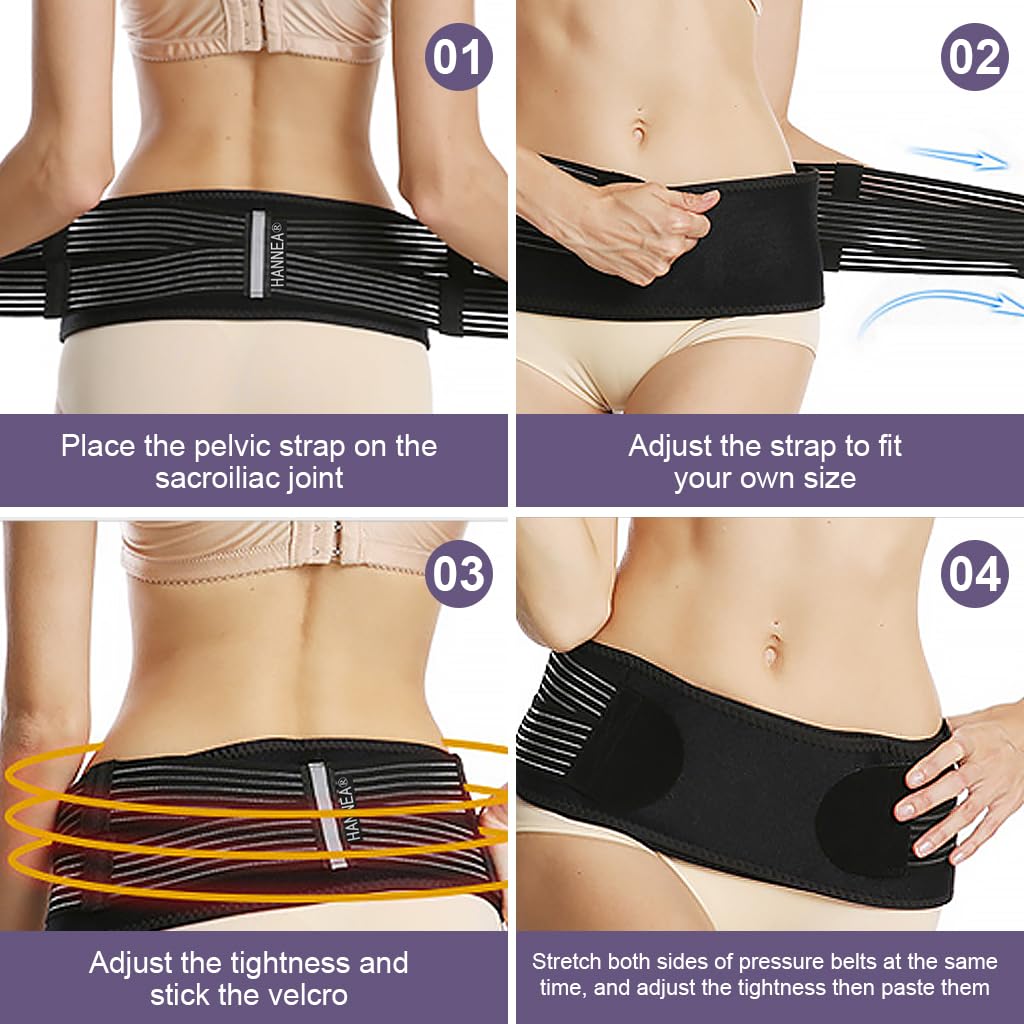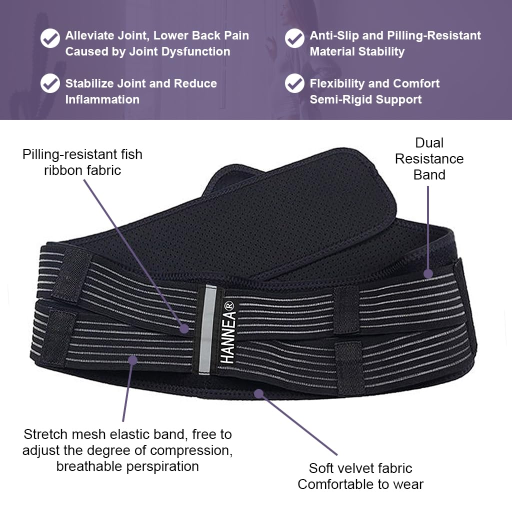 HANNEA Sciatica Pain Relief Belt for Women and Men, Hip Belt for Back Pain - Support and Alleviate Si Joint, Pelvic Support Strap, Sacral, Sacrum, Sciatica Pain and Discomfort