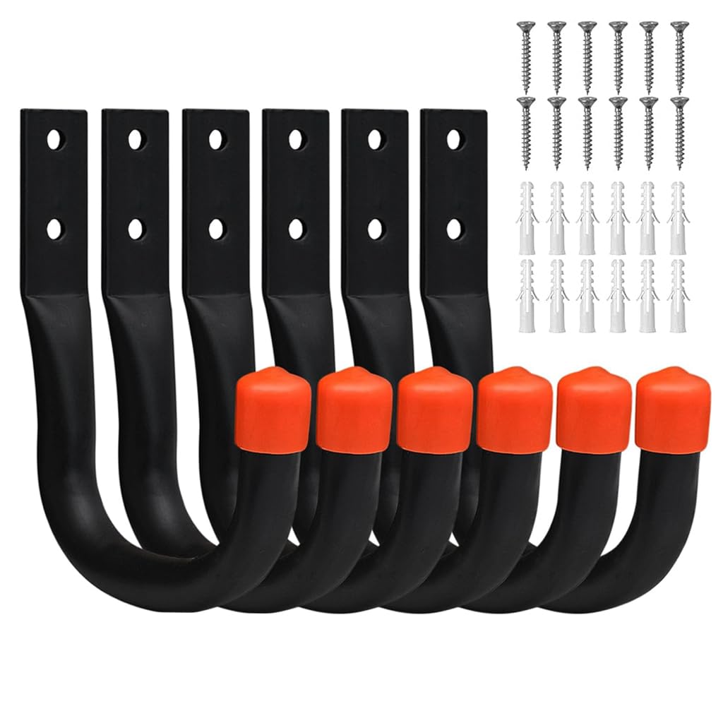 Serplex 6pcs Garage Hooks Heavy Duty Metal Utility Hooks are designed for efficient wall storage and reliable organization in garages, workshops, or utility areas. Made from thicker carbon steel, these robust hooks provide excellent load-bearing strength, supporting up to 40 pounds. With pre-cut holes, wall anchors, and screws included, installation is quick and secure. Their versatile design allows for hanging ladders, bikes, tools, or garden equipment safely, while capped tips enhance safety by preventing scratches or injuries. Finished with a protective coating for corrosion resistance, these durable metal hooks help create an organized and clutter-free workspace, demonstrating the practical durability that defines Serplex products.