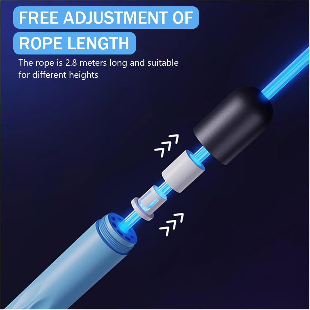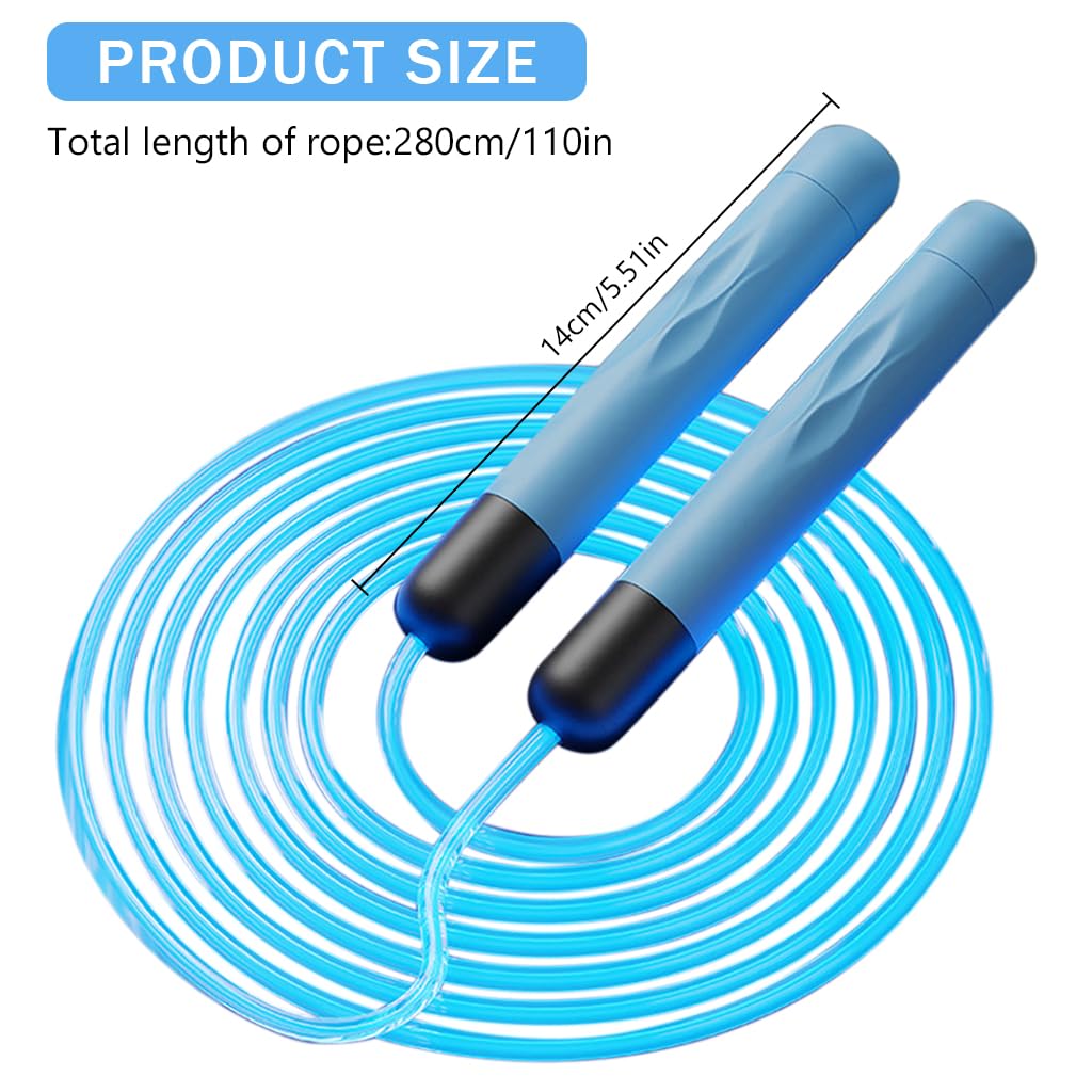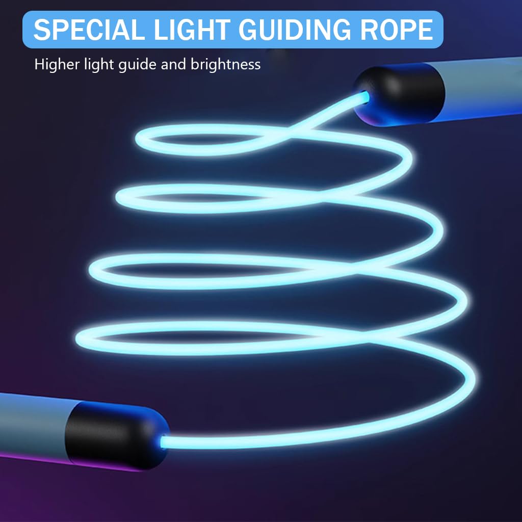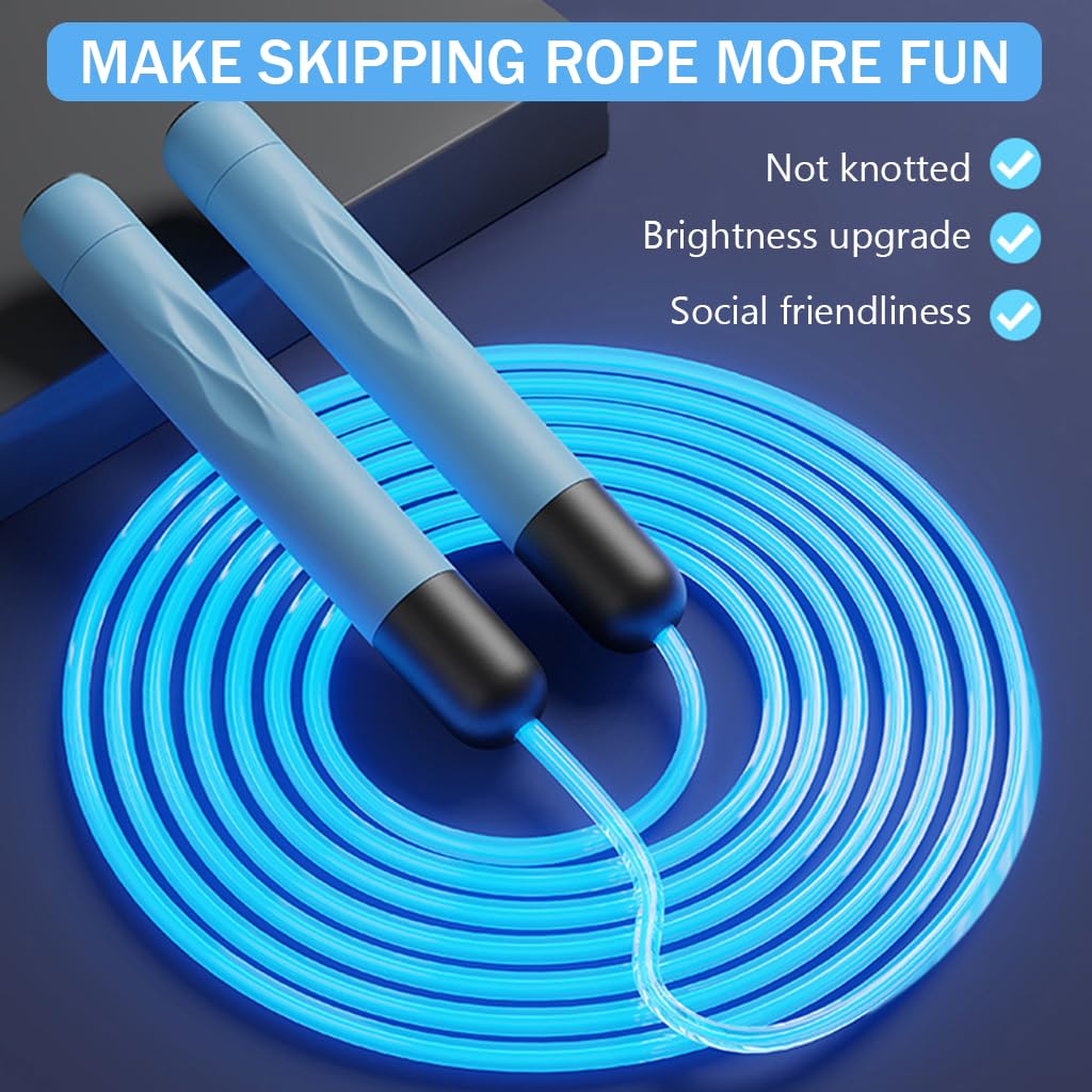 - GLOWING JUMP ROPE: Experience a captivating workout with this unique skipping rope that features colorful LED lights. Perfect for night-time exercises, this rope not only enhances visibility but also boosts motivation and fun during your fitness regime. Note: Batteries are not included.