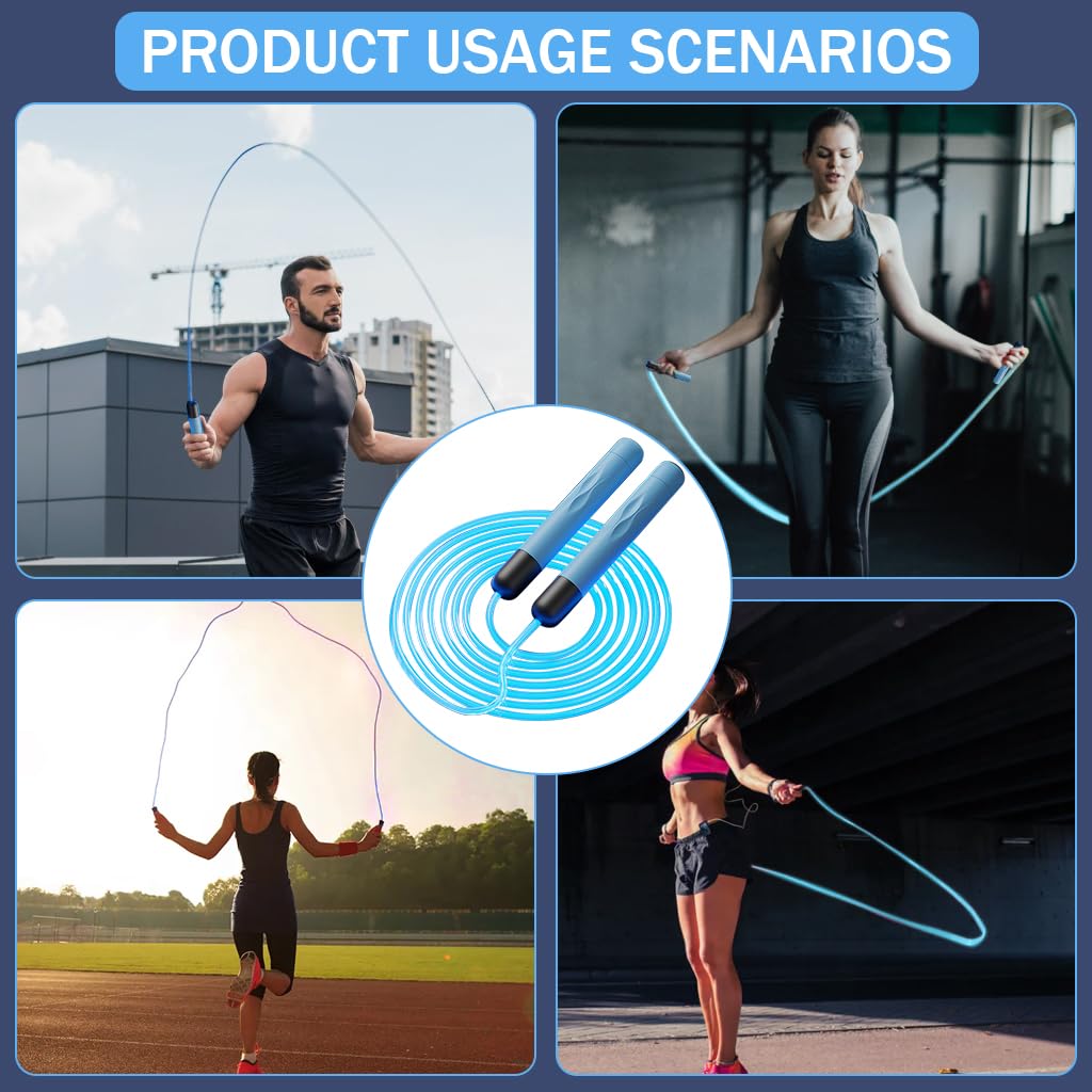 - ERGONOMIC HANDLES: Crafted from durable Abs material, the handles of our jump rope ensure maximum comfort and a secure grip, making your workout sessions smoother and more enjoyable. Their anti-slip feature enhances control for a flawless exercise routine.