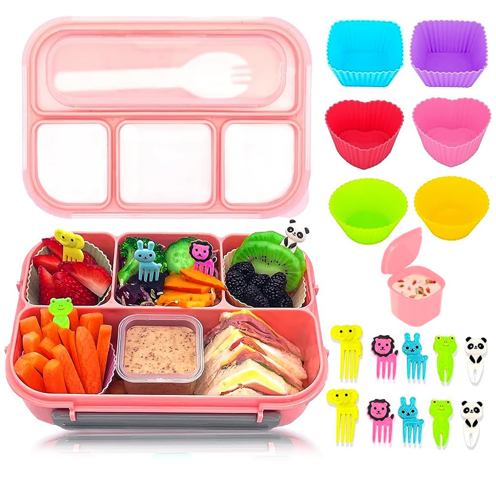 - Supvox Lunch Box for Kids School Bento Box for Kids 4 Compartments Bento Box Fruit Box for Kids to School, with 6 Cups, Kids Fruit Picks, Mini Sauce Box, School Lunch Box for Kids, Pink Supvox Lunch Box for Kids School Bento Box for Kids 4 Compartments Bento Box Fruit Box for Kids to School, with 6 Cups, Kids Fruit Picks, Mini Sauce Box, School Lunch Box for Kids, Pink