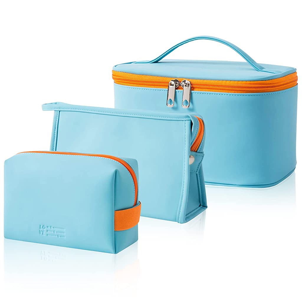 - ZIBUYU Makeup Organizer Bag for Travel and Home with Waterproof PU & Zippered Pouch Set 3 Piece | Blue Cosmetic Bags for Women ZIBUYU Makeup Organizer Bag for Travel and Home with Waterproof PU & Zippered Pouch Set 3 Piece | Blue Cosmetic Bags for Women