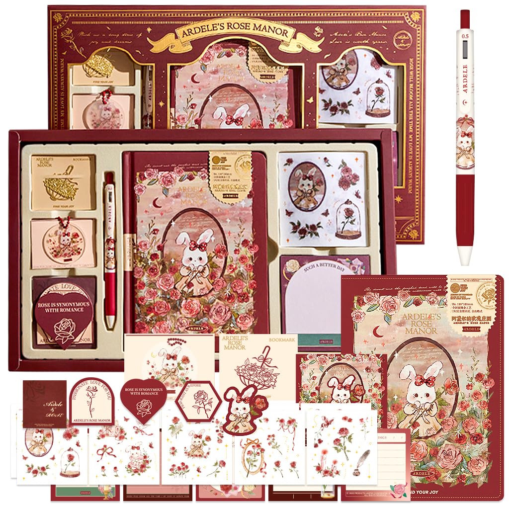 - EXQUISITE SCRAPBOOK GIFT SET: The hardcover scrapbook gift kit is a comprehensive set comes with a hardcover scrapbook, pen, Washi stickers, note paper, greeting card, metal bookmark, and acrylic pendant. The theme of the kit revolves around a fairytale garden, featuring a charming red color scheme with lovely cartoonish bunny and flower prints.