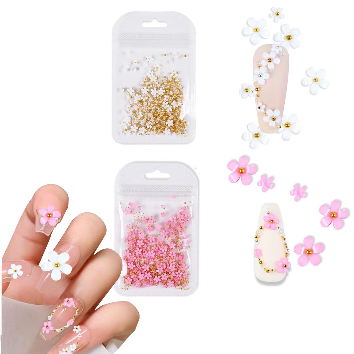 MAYCREATE 400Pcs 3D Flower Nail Art Charms offers a complete nail rhinestones kit designed for creating elegant and versatile nail designs. Each set includes two packs with a total of 400 resin flower decals in white and pink shades, complemented by small golden beads to enhance decorative detail. Made from high-quality resin material, these charms are durable, glossy, and resistant to fading. The flat design makes them easy to apply using tweezers or nail tools, suitable for both natural and artificial nails. This nail art kit allows users to express personal style and creativity while ensuring quality and reliability from the MAYCREATE brand.