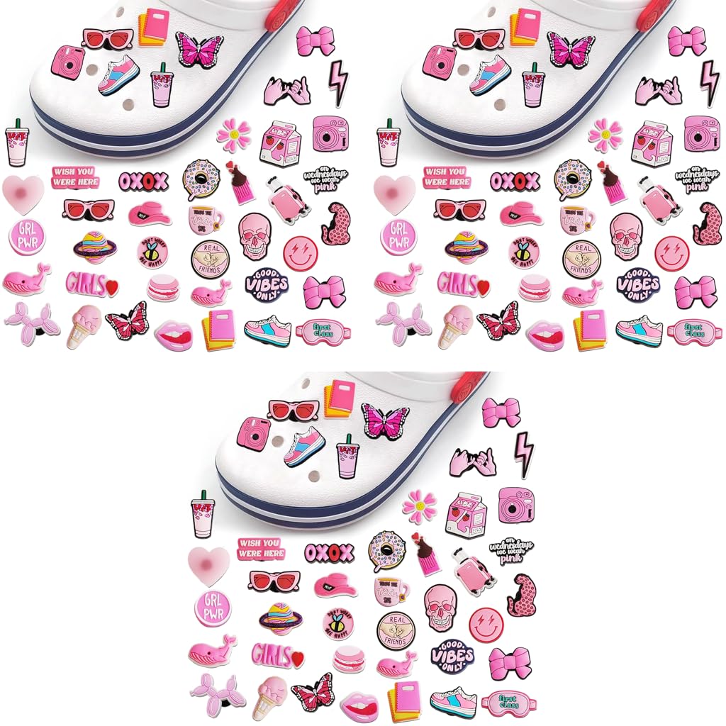 MAYCREATE Rubber 105PCS Pink Shoe Decoration Charms for Bubble Slides Sandals Clogs are designed to add a fun, colorful touch to everyday footwear. Made of high-quality rubber, these waterproof shoe charms are lightweight, durable, and securely stay in place without easily deforming or falling off. The assorted pink designs bring fashionable and playful elements that allow users to personalize Crocs, clogs, slippers, and sandals with creativity and charm. Their vibrant appearance makes them suitable for casual outings, indoor wear, or themed events. Combining durability with stylish design, MAYCREATE ensures long-lasting enjoyment and practicality for anyone looking to refresh their footwear with a unique decorative accent.