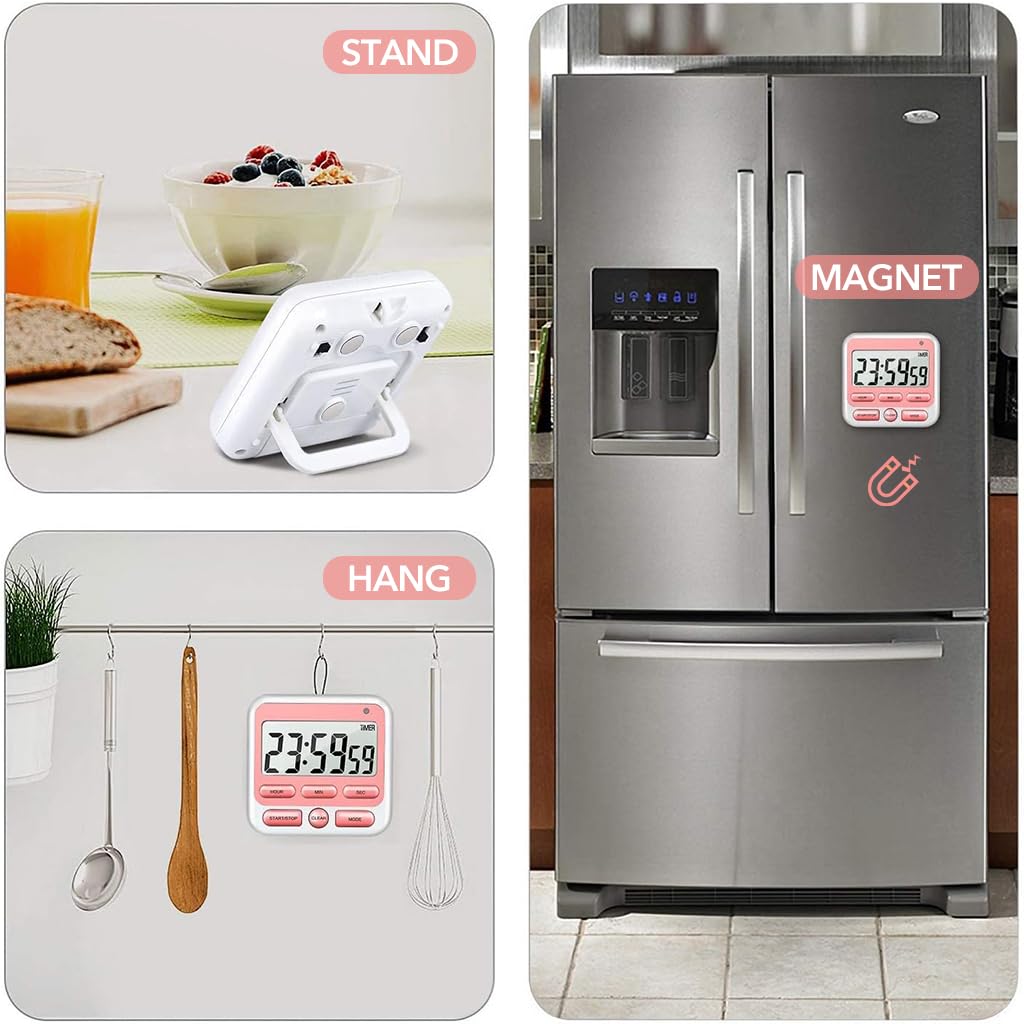 HASTHIP Digital Kitchen Timer with Mute/Loud Alarm Switch ON/Off Switch, Big Digits Loud Alarm Magnetic Backing Stand Cooking Timers Baking Alarm Clock 24hs Countdown Timer (Battery Not Included)