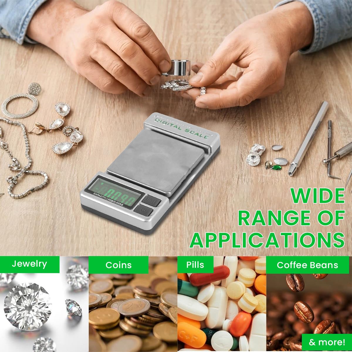 - ATTENTION BATTERY NOT INCLUDE: AG12 button cell battery not include. This Stylus Gauge offers versatility with its 5 measurement unit- g/oz/ozt/TL/ct. Easily switch between units and read the large blue LCD display with backlight, more convenient to read.