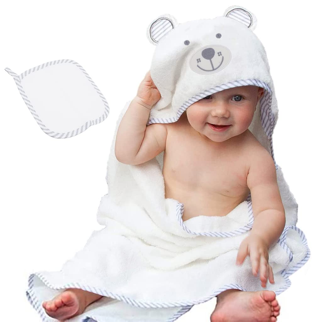 - Features a cute cartoon bear hood and matching face towel for convenient full-body and hair coverage.