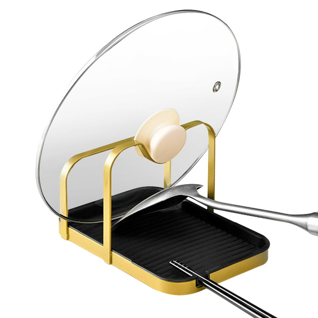 - HASTHIP Spoon Rest Pot Lid Holder for Kitchen Organization with Detachable Drain Tray 20x13.8x11.5cm featuring Metal Dual Golden Black Design HASTHIP Spoon Rest Pot Lid Holder for Kitchen Organization with Detachable Drain Tray 20x13.8x11.5cm featuring Metal Dual Golden Black Design