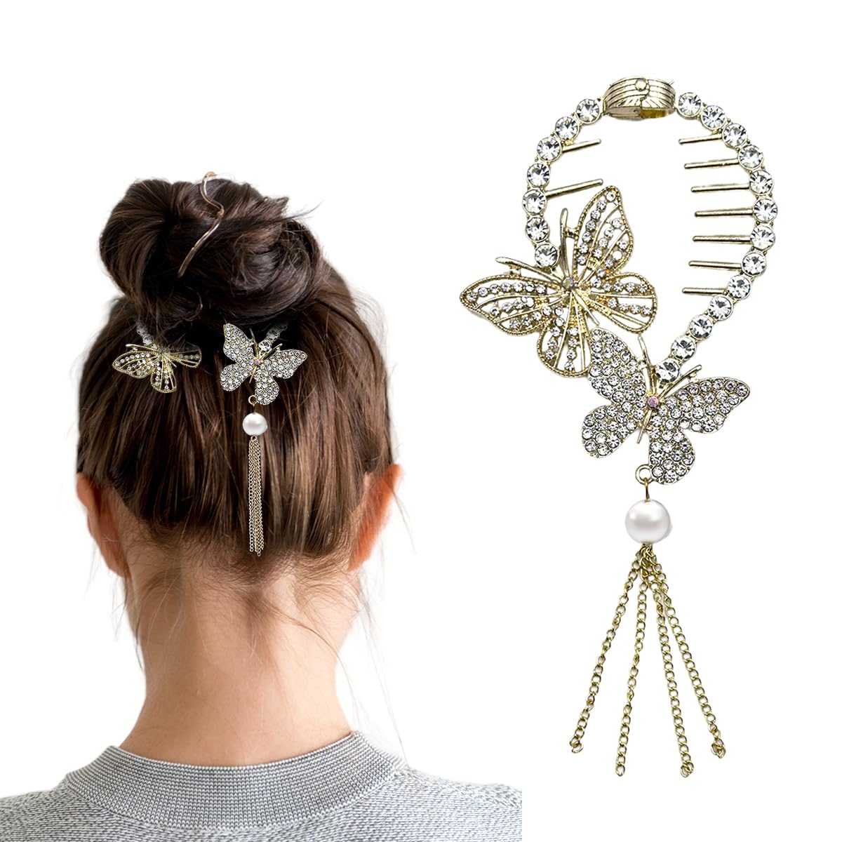 Venzina Butterfly Bow Clips for Women Girls are stylish tassel hair bun accessories designed with a rhinestone-studded butterfly that adds elegance and shimmer to any hairstyle. Made of high-quality alloy, these durable hair clips feature a unique self-lock claw mechanism that securely holds hair buns in place throughout the day. The delicate tassel accent with a shining pearl enhances both casual and formal looks, making it suitable for weddings, parties, and daily wear. Easy to use and gentle on hair, this Venzina accessory combines beauty with functionality, offering a reliable and refined finishing touch that reflects the brand’s attention to detail and craftsmanship.