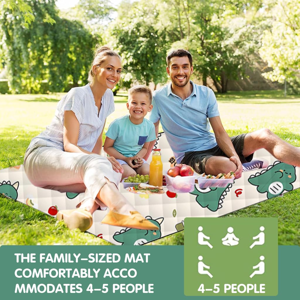 - COMFORTABLE & SPACIOUS: With dimensions of 200x200cm, the family-sized mat comfortably accommodates 4-5 people, offering ample space for leisurely lounging and dining al fresco. The soft, thickened fillings nestled between the water-resistant outer layers provide a soft landing, making this mat an ideal choice for a cozy and fun picnic experience with loved ones.