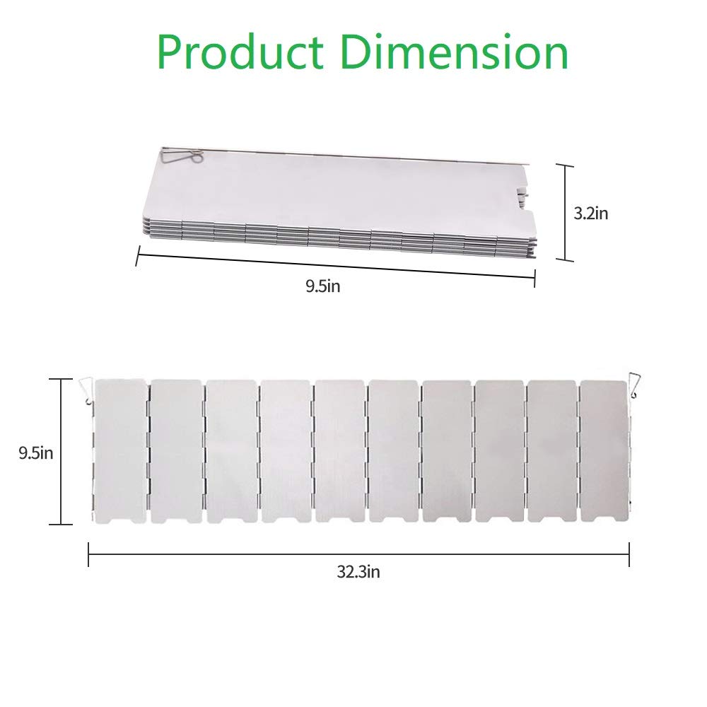 - ADJUSTABLE: This stove windshield has 10 windscreens with ventilated grooves in the bottom and connected by hinge pins, which can folded to any size and shape to fit different size of stove.