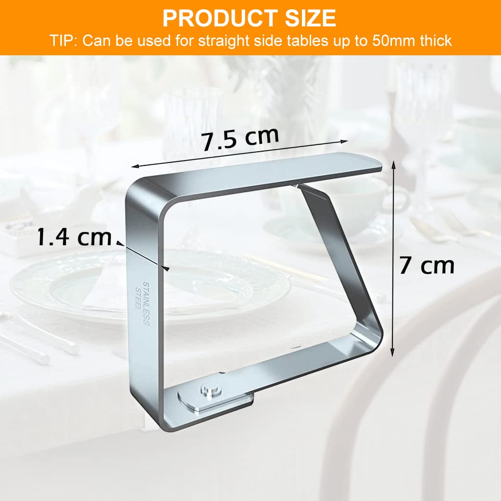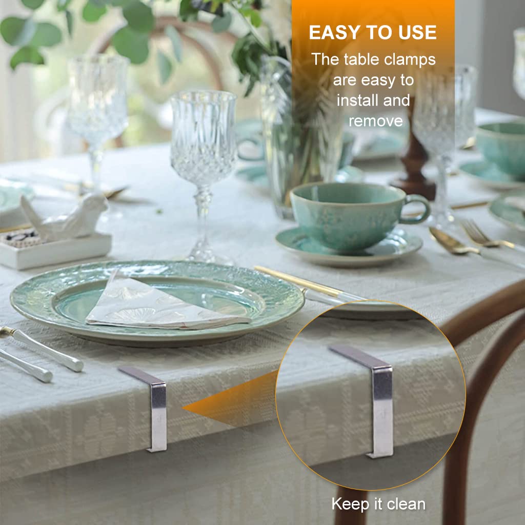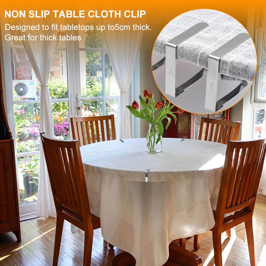 - Supvox® Tablecloth Clips, 4 Pack Stainless Steel Large Table Cover Clamps Table Cloth Holderss, Heavy Duty Picnic Table Clips, Table Cloth Holders Ideal for Restaurant Weddings Party (7 * 7.5cm) Supvox® Tablecloth Clips, 4 Pack Stainless Steel Large Table Cover Clamps Table Cloth Holderss, Heavy Duty Picnic Table Clips, Table Cloth Holders Ideal for Restaurant Weddings Party (7 * 7.5cm)