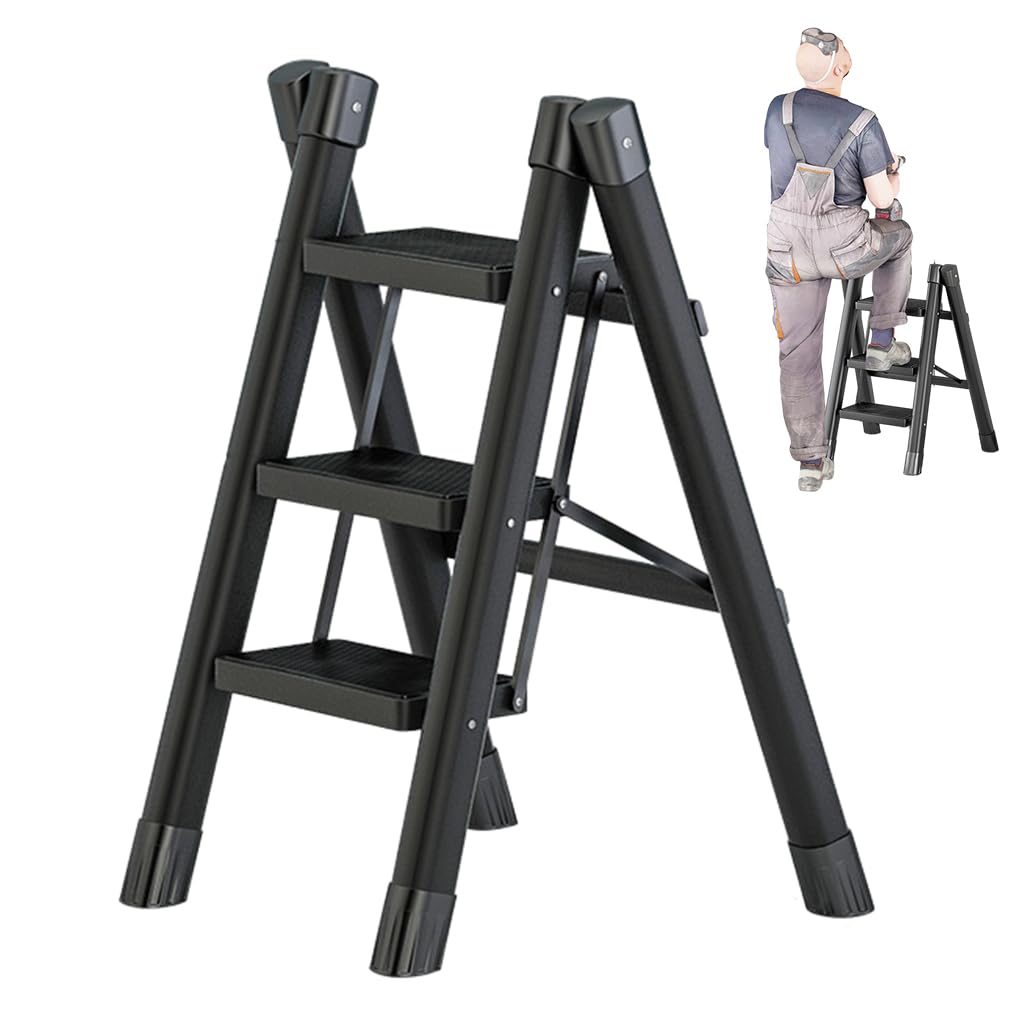 HASTHIP 3 Step Ladder for Home with Anti Slip Pedal and 330lbs Capacity | Foldable Carbon Steel Design