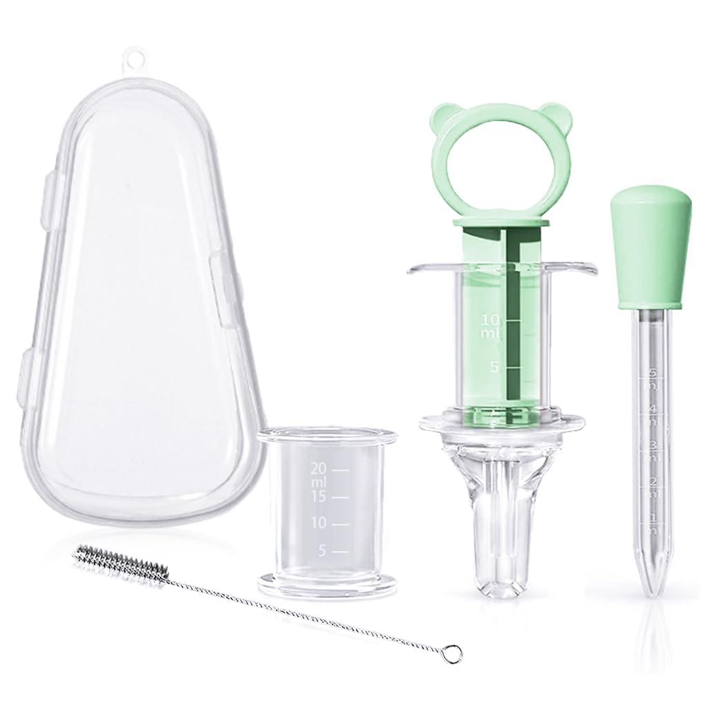 - Includes a syringe, dropper, pacifier, measuring container, and storage box for complete medicine feeding needs.