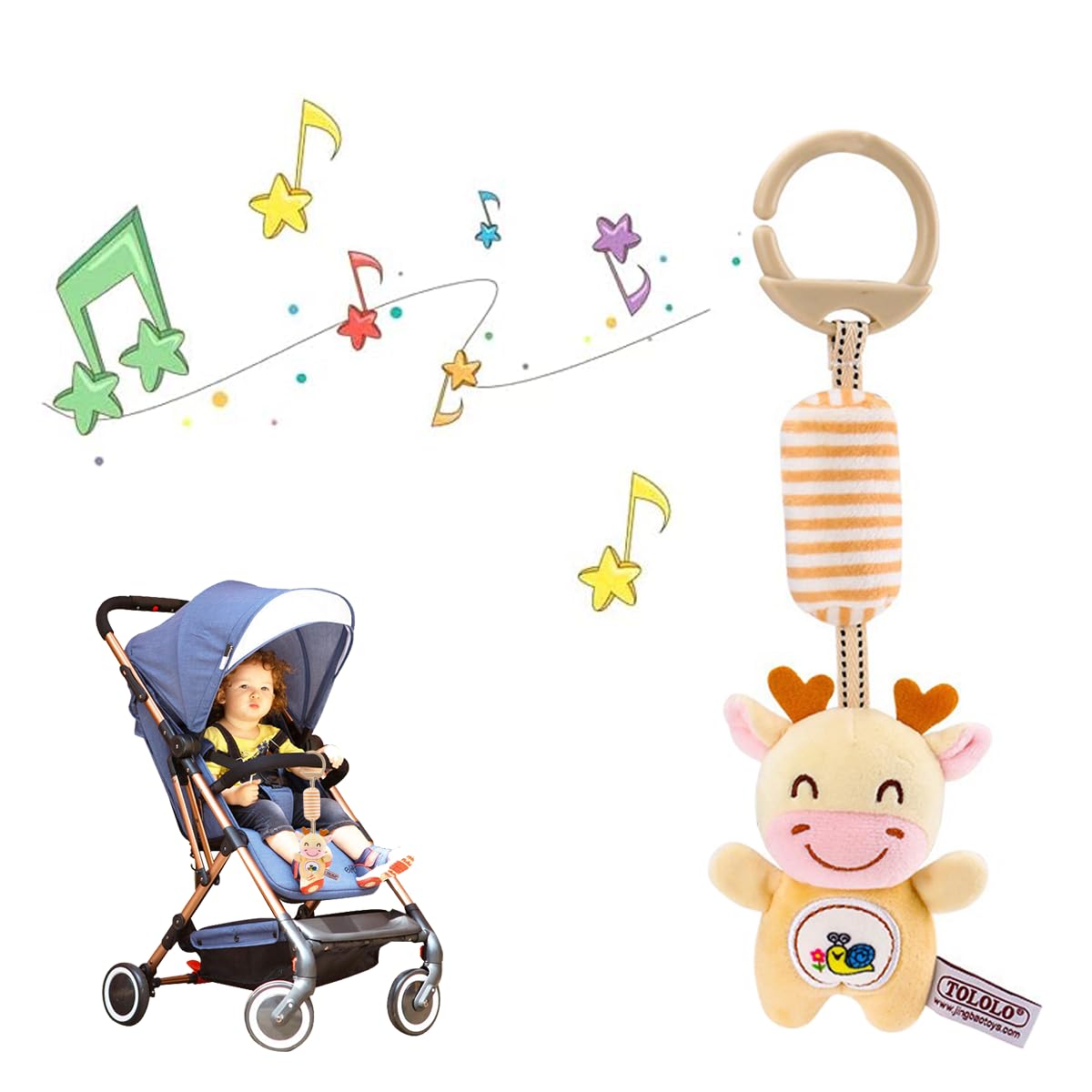 - Features a secure hanging loop for easy attachment to strollers, cribs, or car seats.
