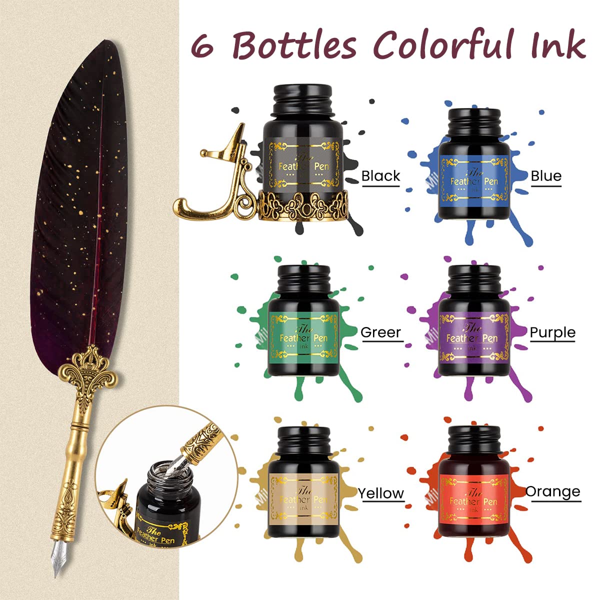 - Climberty Feather Pen with Ink, Calligraphy Feather Pen with Wax Seal Stamp, Includes Feather Dip Pen, Glass Dip Pen, 6 Ink, 18 Replacement Nibs, Pen Holder, Seal Stamp, Wax Beads, Wax Spoon (Red) Climberty Feather Pen with Ink, Calligraphy Feather Pen with Wax Seal Stamp, Includes Feather Dip Pen, Glass Dip Pen, 6 Ink, 18 Replacement Nibs, Pen Holder, Seal Stamp, Wax Beads, Wax Spoon (Red)