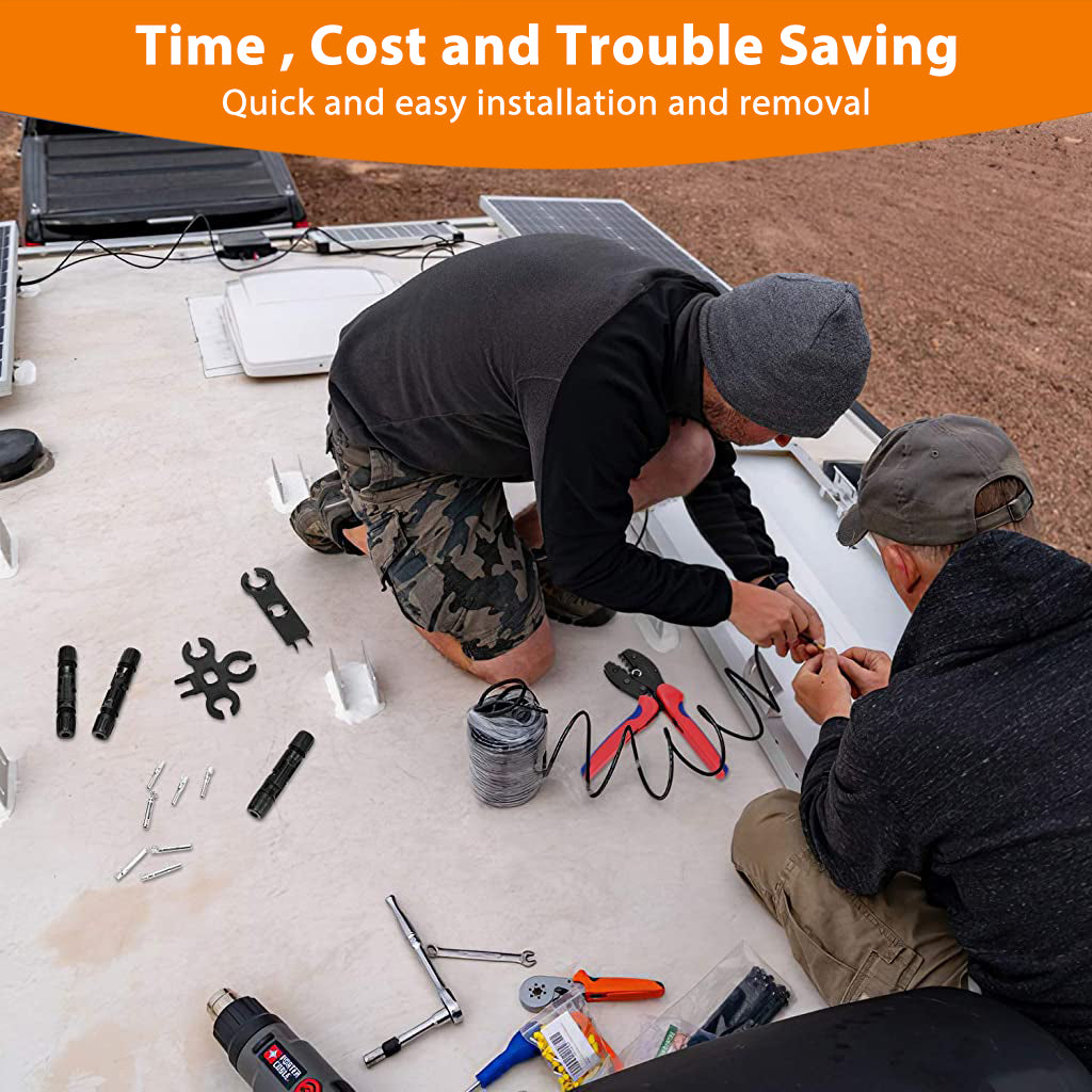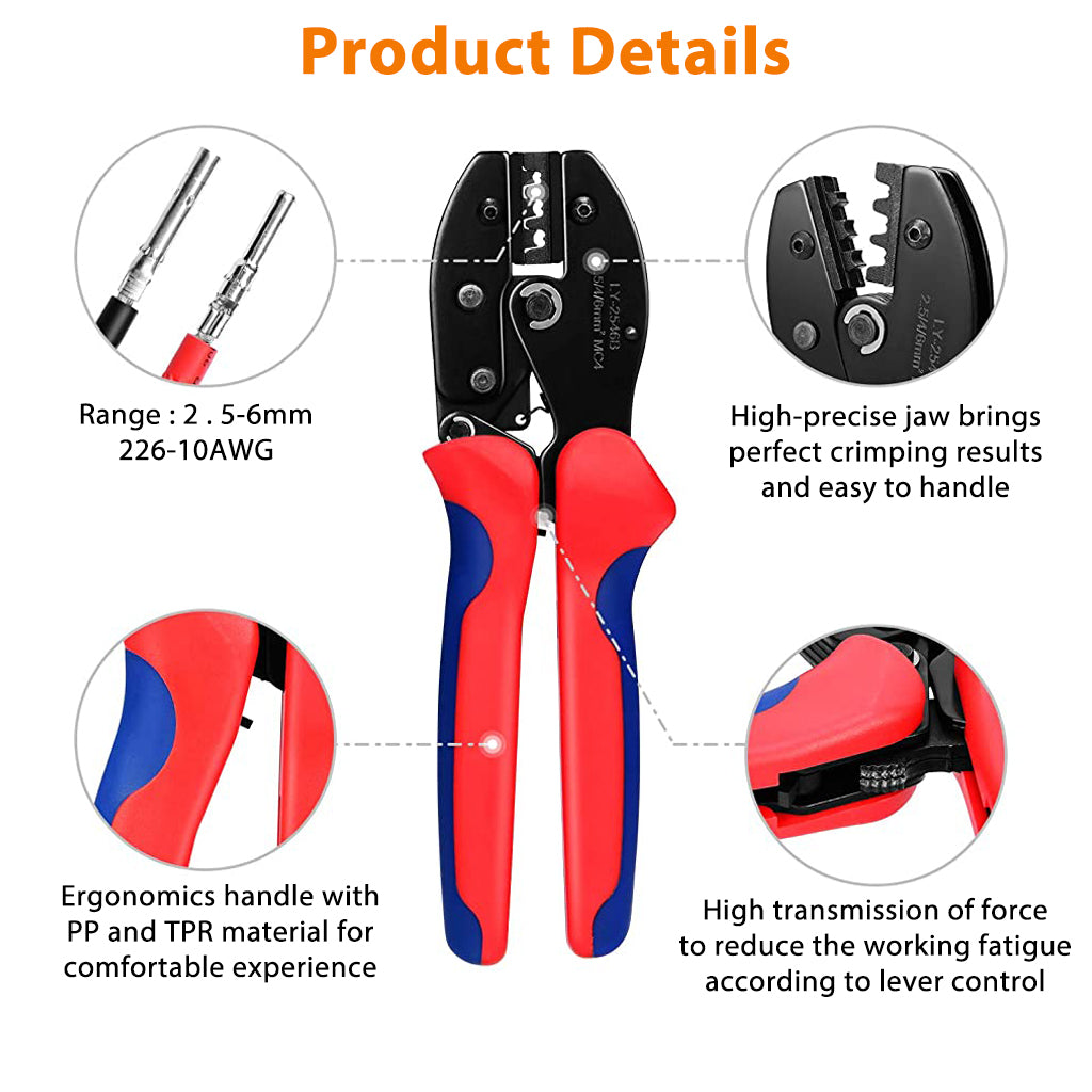 - FULL SET OF CRIMPING TOOLS FOR PHOTOVOLTAIC CABLE: Including 1 x MC4 solar photovoltaic cable pliers, 2 x spanners, 6 x solar plugs. Professional set of crimping tools for solar panel.